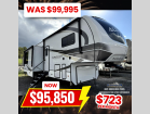 The BEST RV financing! You will feel right at home in this spacious half-ton-towable Eagle HT fifth wheel! Upgrades include water softener, back up and side view cameras, tire pressure monitoring system, heavy duty shocks and much more! Delivery available!