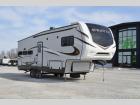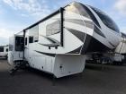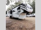 Luxury Used 2024 Grand Design Solitude 390RK with spacious rear kitchen, residential appliances, king suite, auto-leveling, solar-ready, four-season comfort nationwide.