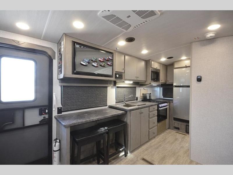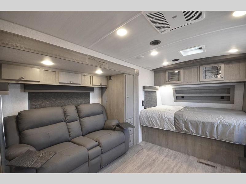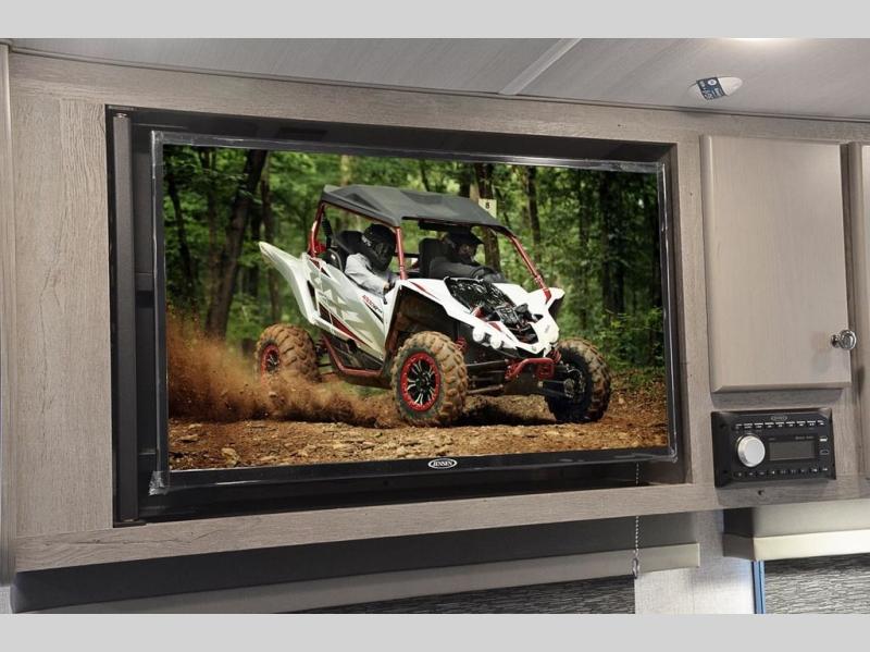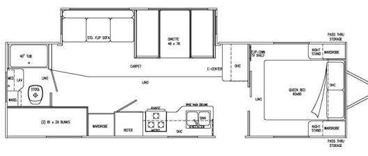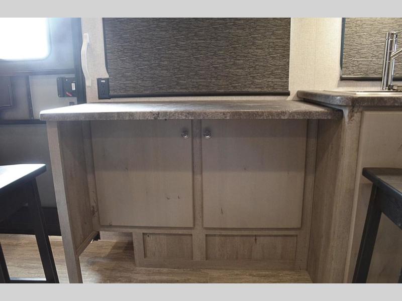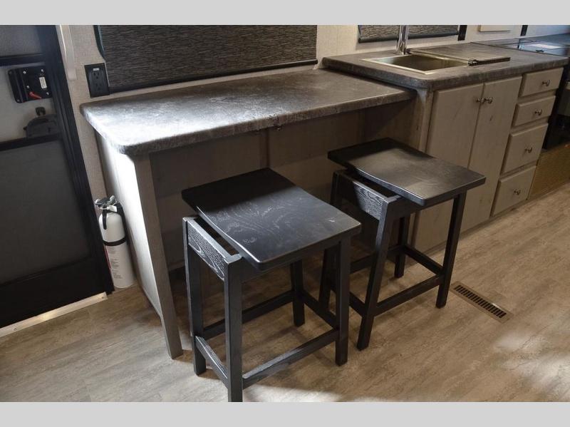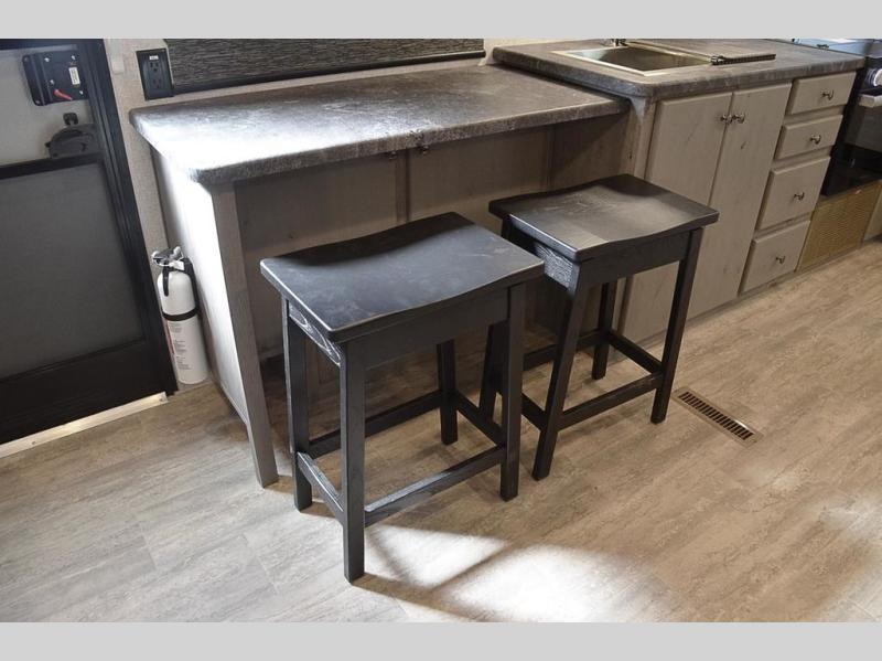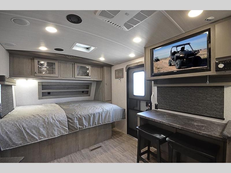 Single Slide Wrangler Bunkhouse Travel Trailer w/Rear Corner Bath Including Tub/Shower, Lav. Med.Cabinet, Small Wardrobe & Toilet, Rear Corner Bunk Beds, Wardrobe, Refrigerator, 3 Burner Range, Double Kitchen Sink, Flip Sofa & Booth Dinette Slideout, Ent. Center, Front Queen Bed w/Nightstand/Wardrobe, Front Pass-Thru Storage and More!
