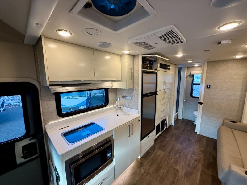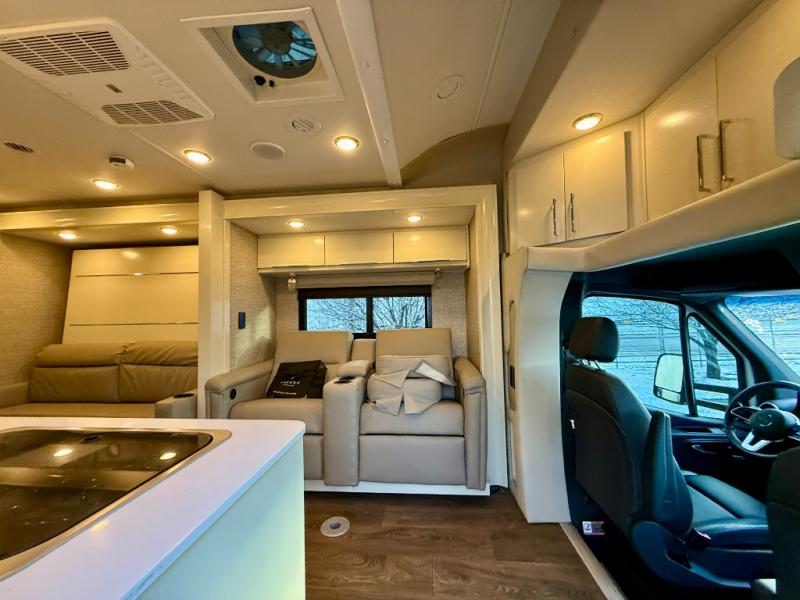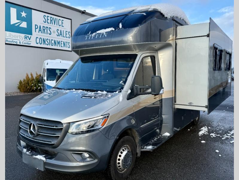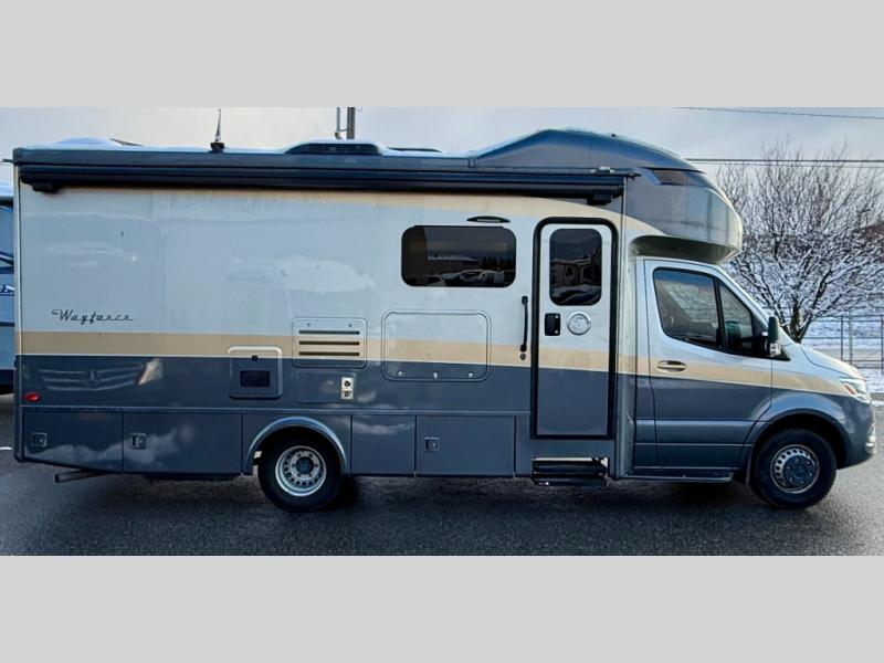 The Wayfarer Class C diesel motorhome from Tiffin Motorhomes offers you more of everything you need along with the luxurious styling and amenities you want! Spacious interiors, industry-standard safety features, and high-performance upgrades embody the heart and soul of every Wayfarer. Starting with a Mercedes Sprinter chassis, a 7G-Tronic automatic transmission, plus a 5,000 lb. hitch capacity, you can plan your trip across the states. The 10.25" MBUX infotainment system with in-dash navigation will make your journey that much easier and you're sure to stay comfortable in the black leather seats. Each model features a soft vinyl ceiling, a designer faucet in the kitchen, LED reading lights and nightstands in the bedroom, plus a porcelain vessel sink with a chrome faucet in the bath that will add luxury to your morning routine. Outside, the 16' Girard power awning with speakers will provide an outdoor living space, the hydraulic leveling system will make setting up a snap, and the eight-step full-body paint system is sure to turn heads wherever you choose to travel!
