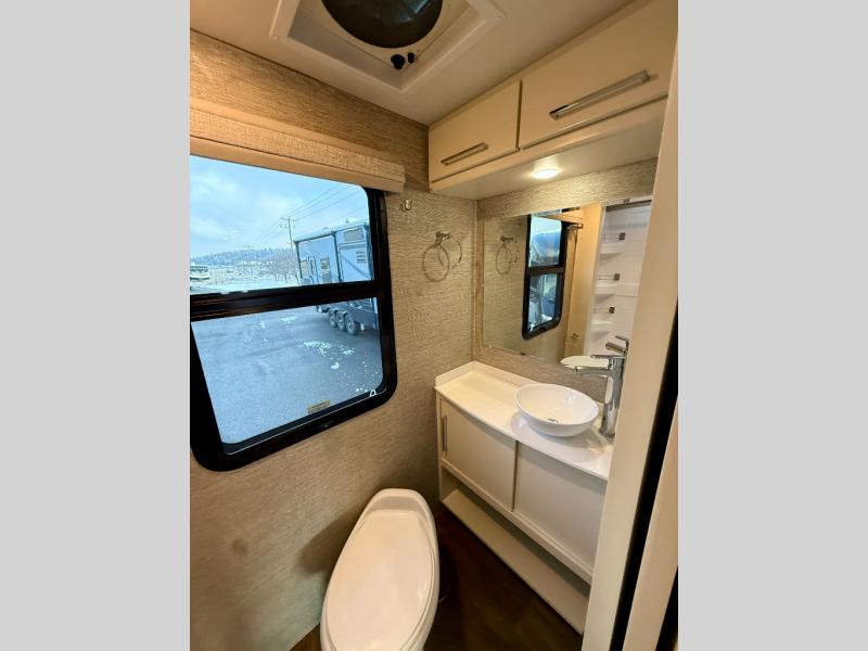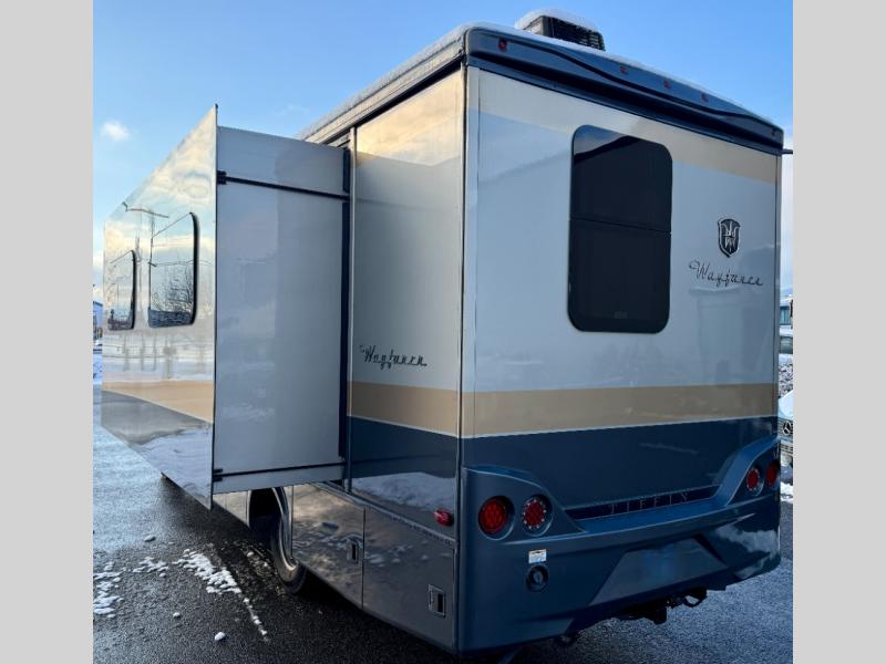 For all of your adventures, you will appreciate the convenient and functional amenities found in this Wayfarer Class C diesel motorhome! The 24" x 36" shower in the rear bathroom is a private location where you can get ready for the day, and the Murphy bed is such a great addition because it can be folded away to reveal more interior living space. You will find it easy to create those home-cooked meals that you love with the LP cooktop and convection microwave in the kitchen, and the over-the-counter lighting, as well as the under-the-counter lighting, will be both beneficial and stylish.