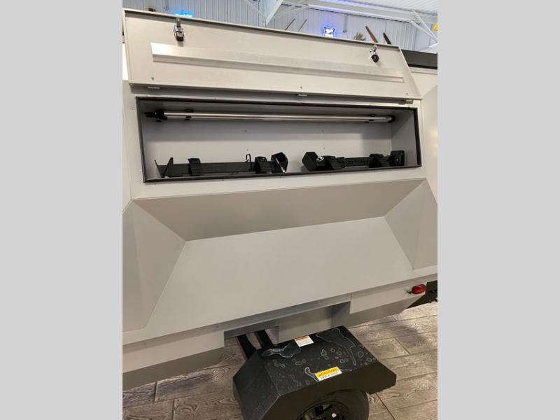 This Camp365 folding pop-up camper is amazingly easy to use as an off-road companion, an ice fishing camper, a weekend retreat, or a hunting base camp! It has 83 cubic feet of dry storage and the ability to sleep six people. The marine-grade Aqualon roof is made of a durable synthetic used in the marine industry to resist punctures, fading, cracking, and extreme weather conditions. The two side awnings with poles will protect you as you are outside preparing food, and there is a solar panel plug so that you can add an optional solar panel if desired.