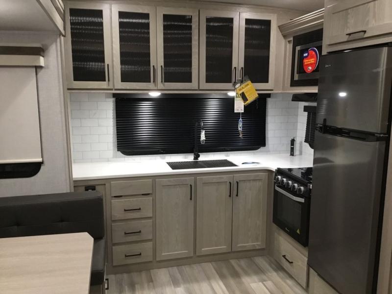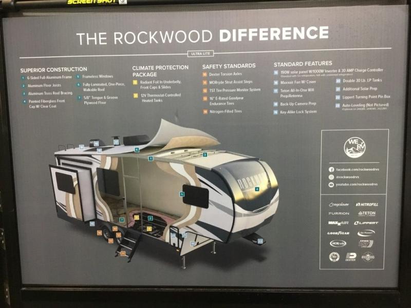 With any Rockwood Ultra Lite fifth wheel and travel trailer by Forest River RV, the superior construction includes a painted fiberglass front cap with clear coat, a full laminated one-piece walkable roof, aluminum truss roof bracing, and a six-sided full aluminum frame. Some safety standards include Dexter torsion axles, MORryde strut assist steps, and the TST tire pressure monitor system. The interior offers the OneControl panel with WeRV app control, screwed and glued, solid wood cabinet doors and drawers with hidden hinges, metal drawer glides and residential or upgraded hardware. You'll also find solid surface kitchen countertops, designer kitchen backsplash, plus many more features depending on the Rockwood Ultra Lite you choose!