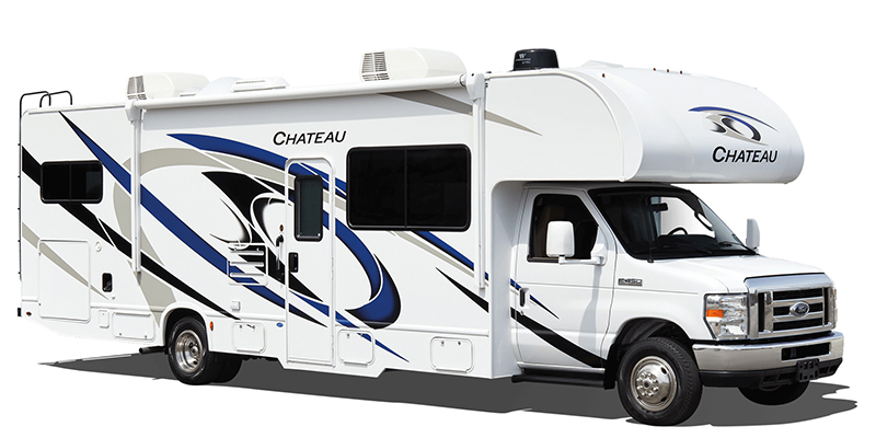 Comfort, convenience, and class is what you'll find in this Chateau Class C gas motorhome! A rear private bedroom is your place to relax at night on the walk-around RV queen bed, and you can also grab a change of clothes from the bedside closets before heading out for an afternoon hike. A large slide in the main living area gives you space to cozy up on the 68" jackknife sofa while you watch a movie on the 39" TV. The cook will love all the kitchen amenities at their fingertips, plus the extra sleeping space on the 54" x 96" bunk over the cab and furniture is perfect when you have overnight guests. If you like, choose a few options such as theater seating, a bedroom 32" TV, and/or an exterior 32" TV.