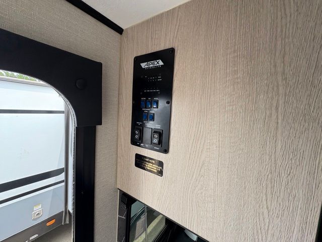 Lightweight living and camping is found with the Apex Ultra-Lite travel trailers by Coachmen. These eco-friendly units are made to last thanks to the Azdel composite sidewalls, the laminated aluminum floor, and the vacuum-bonded laminated crowned roof. Lippert axles and nitrogen filled radial tires make towing easier than ever, plus there is a friction hinge entrance door, a 100-watt solar panel with a 10 Amp control charger, and slam latch baggage door catches for easy unloading. Some of the interior comforts you'll fall in love with are the one-piece seamless edge countertops, the hard valances with night shades throughout, the matte black hardware, and the residential comforter. The Apex Ultra-Lite trailers also include USB ports, a digital TV antenna with cable hook-ups and Wi-Fi capability, and an AM/FM stereo with Bluetooth to ensure you'll never go bored on rainy camp days!