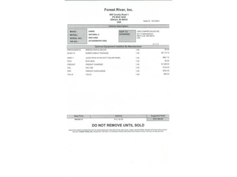 New 2023 Forest River RV Sabre 350RL Fifth Wheel