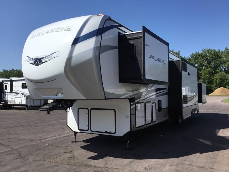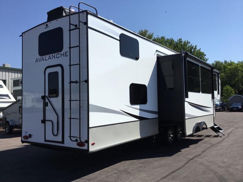 With any Keystone luxury full-profile Avalanche fifth wheel, you will experience wide-body construction that allows you to stretch out and stay awhile during any season thanks to the Polar Pack All Season Protection that includes a heated and enclosed underbelly, an Astro foil reflective layer on the roof, front and rear walls, and two static attic vents, plus more! The interior offers hardwood slide out fascia with wood accents, crown molding, plus your choice of modern interior design. There are many more Keystone exclusives, like the Tru-Fit slide construction, the in-floor heating ducts, the 4G LTE and Wi-Fi prep, and much more to bring you a full-packed, luxury fifth wheel!