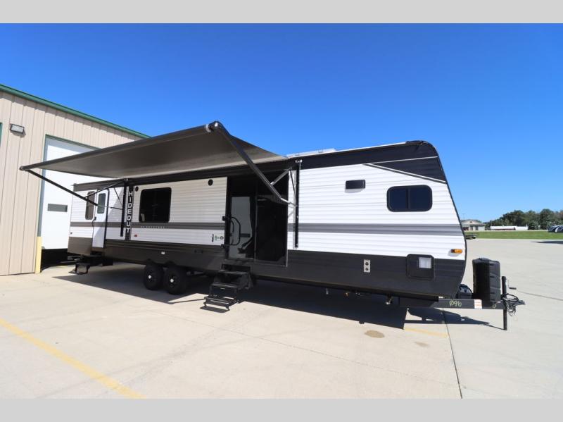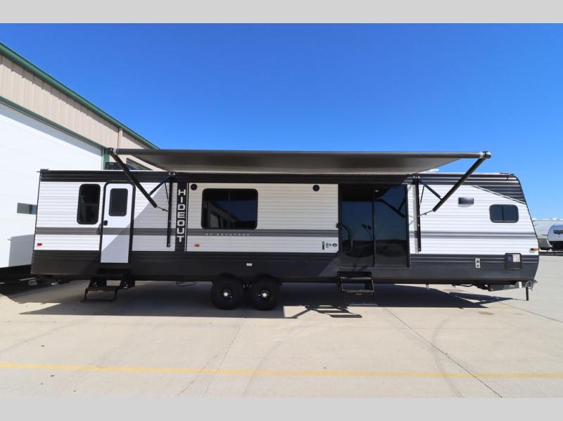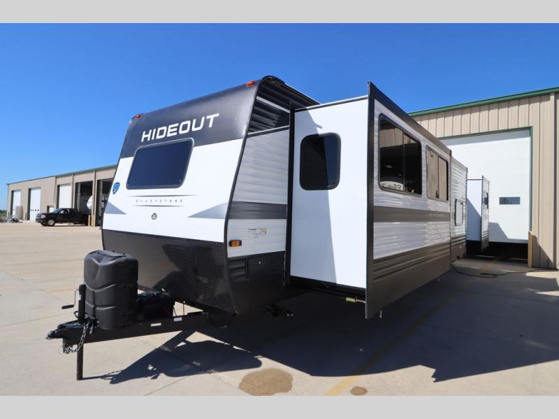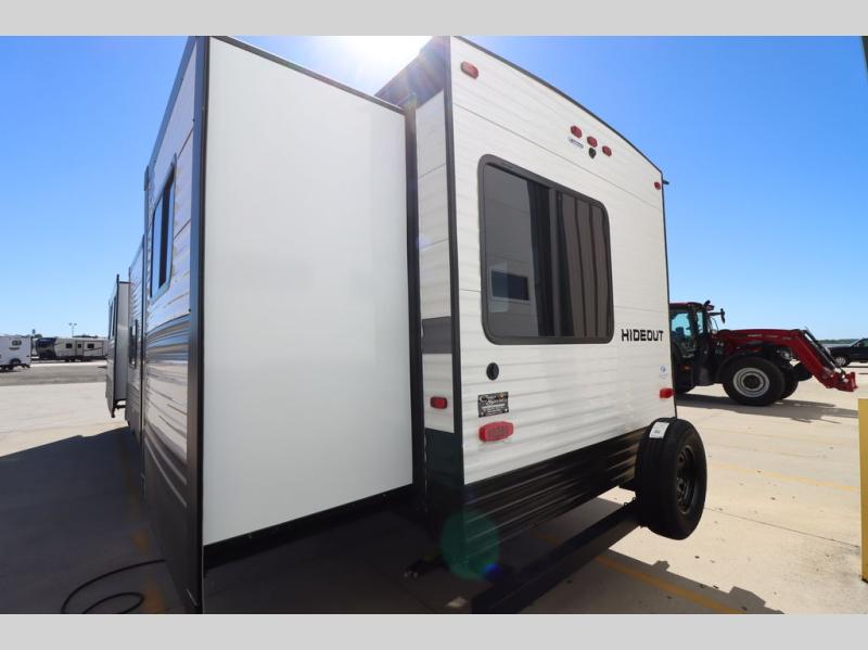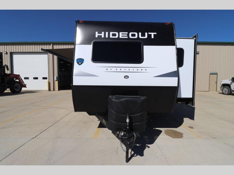 The Keystone Hideout travel trailer and destination trailer will be just what the doctor ordered for a stress-free holiday at your favorite campsite! There are a few exclusive features that you'll only find on a Keystone product, like the color-coded unified wiring, the preparations for 4G LTE and Wi-Fi, the Tuf-Lok™ thermoplastic duct joiners, the in-floor heating ducts, and the Tru-fit™ slide construction. Each model has a power awning for some shade in the afternoon, and the tinted safety glass windows will prevent the harmful UV rays from getting inside. You'll also have blackout night shades that you can close when you want privacy, and the SolarFlex 200 is a solar power system that will refill your battery to operate onboard 12V systems with just one day of peak sun exposure.