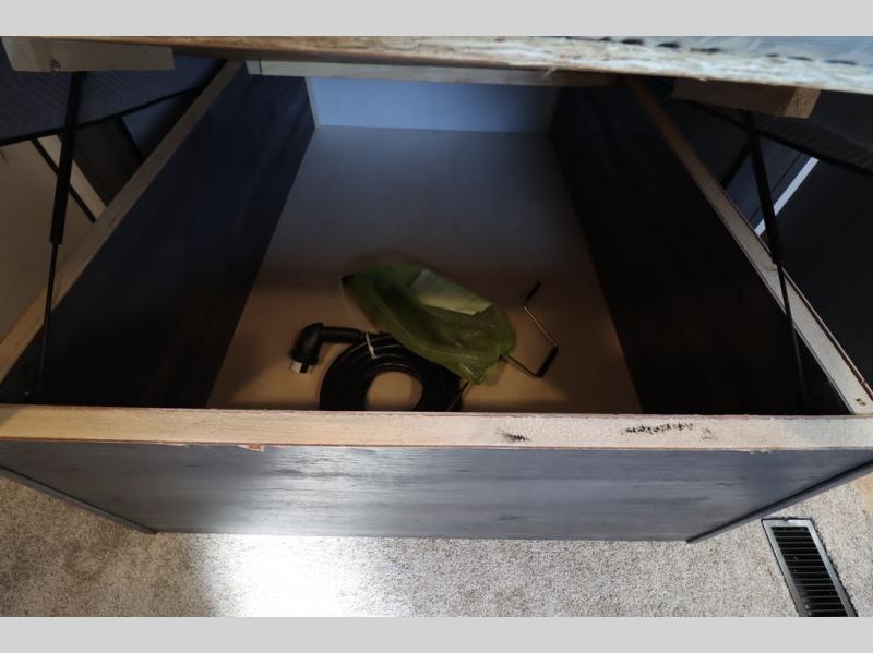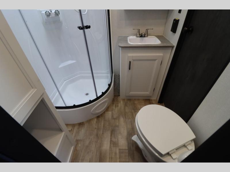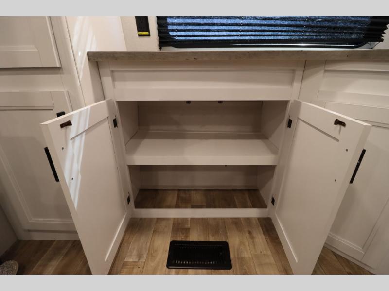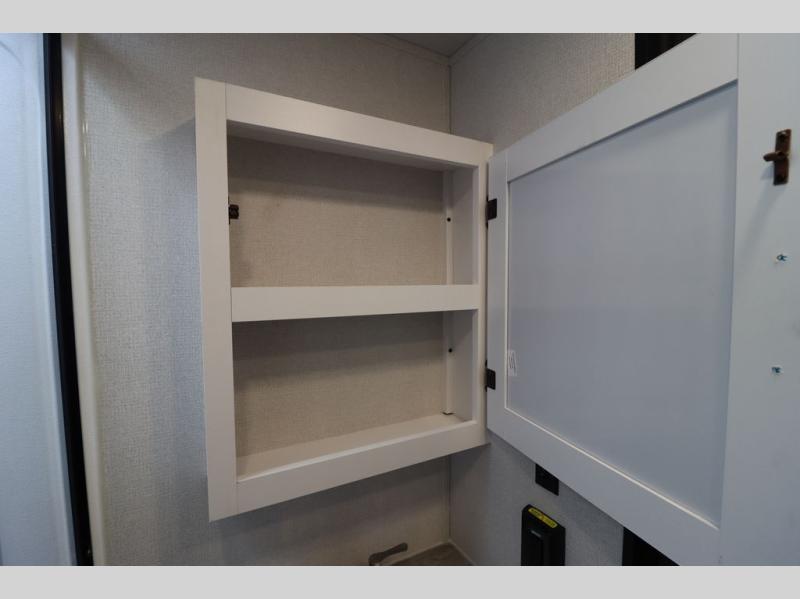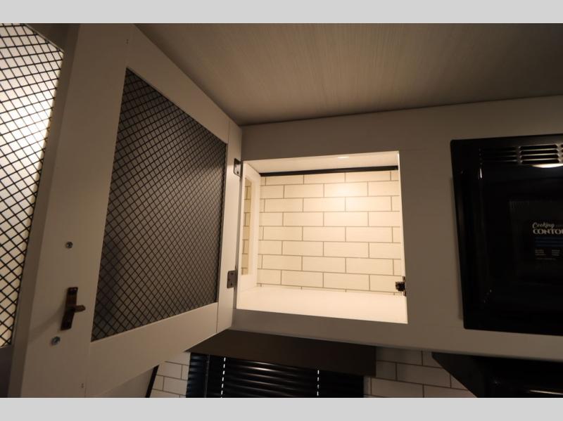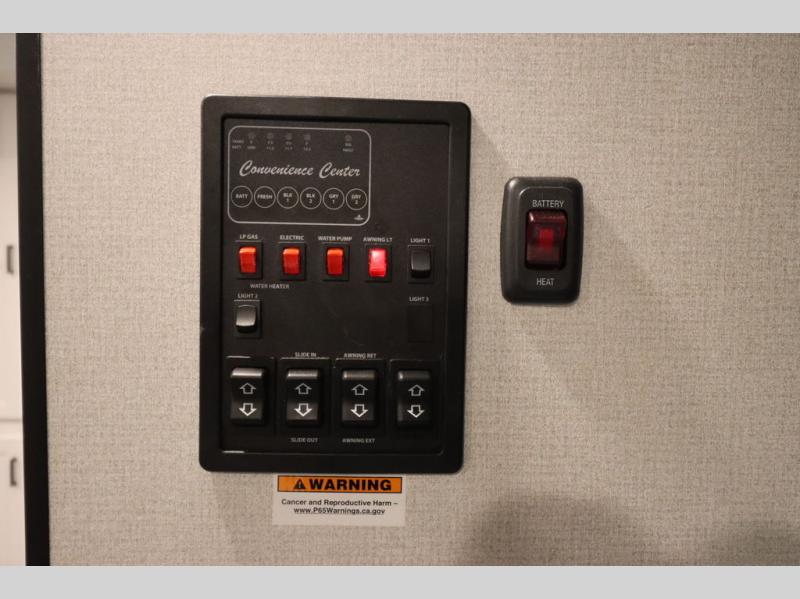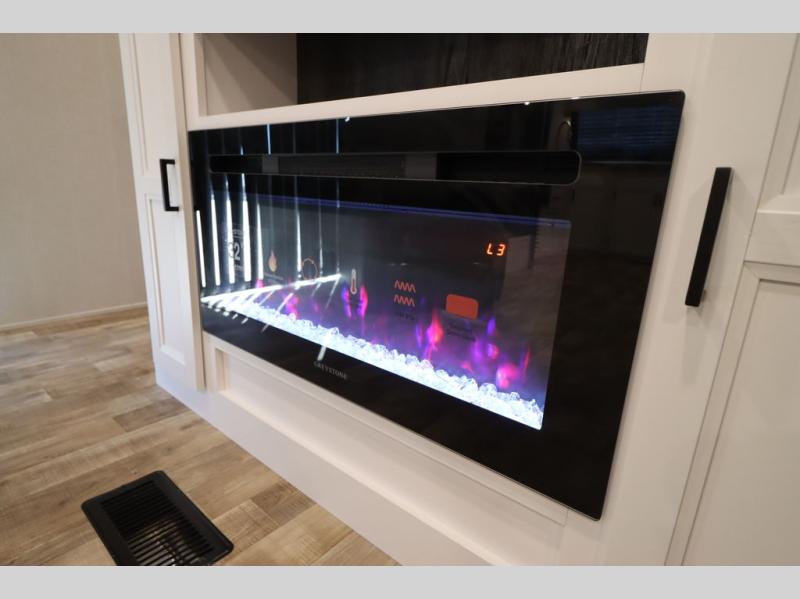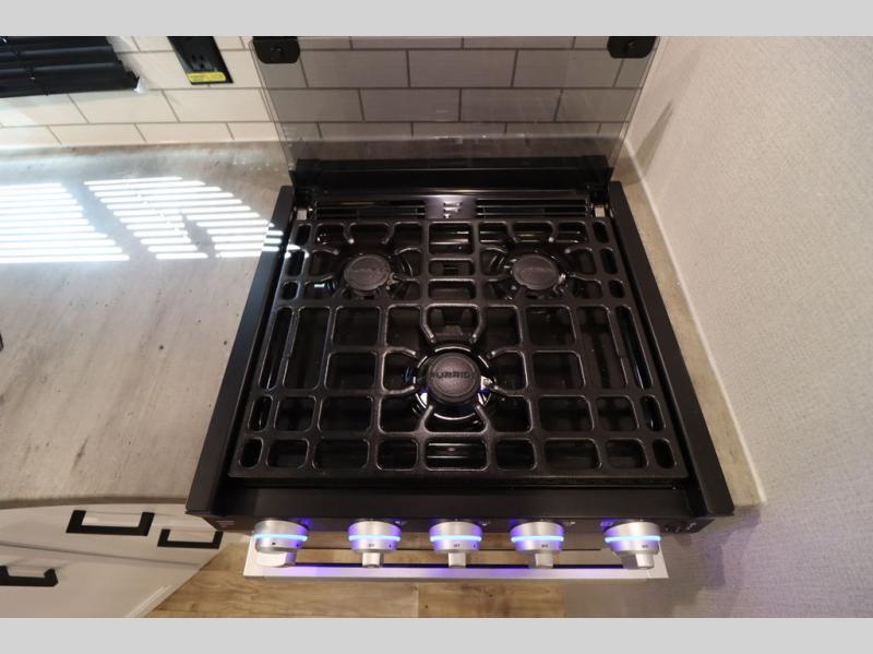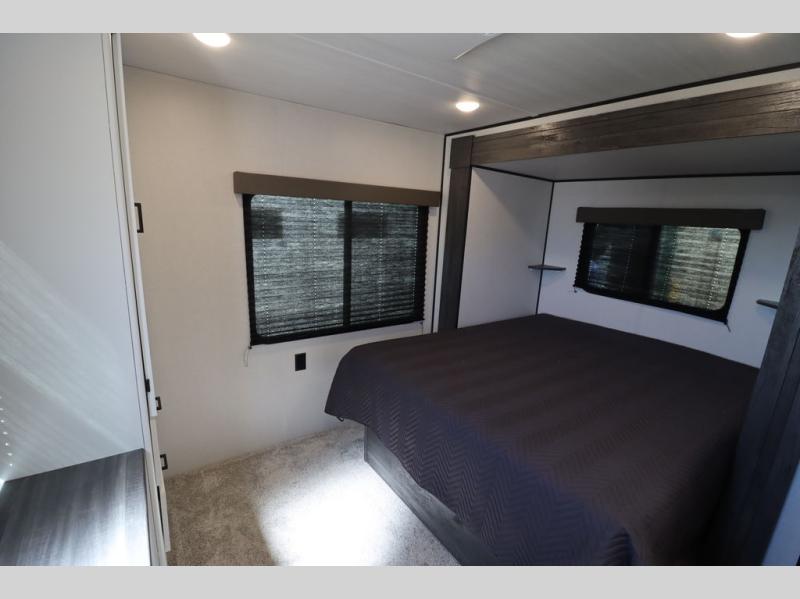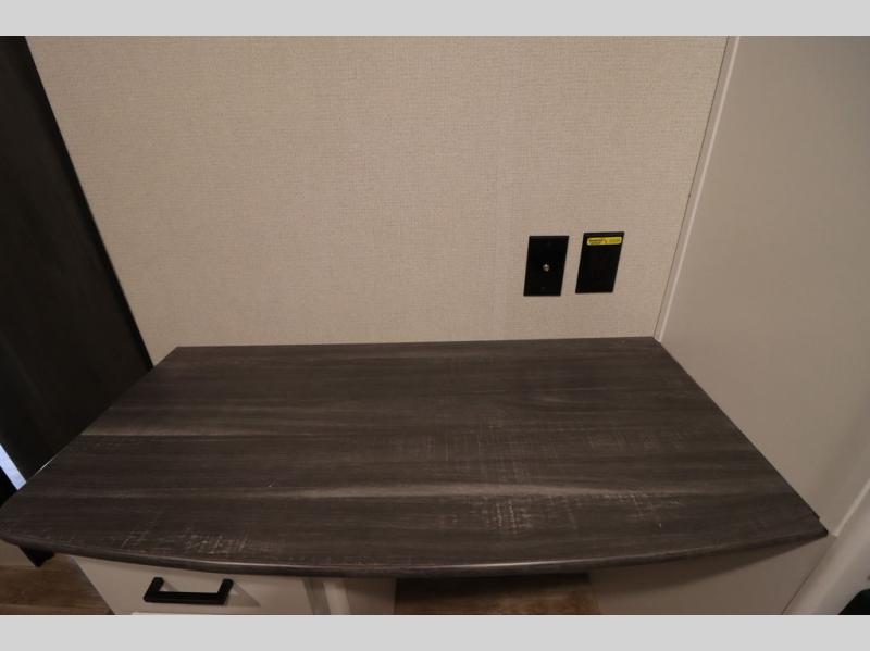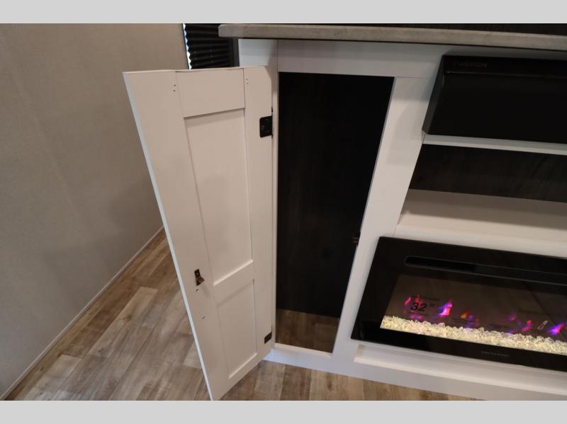 This Hideout destination trailer will serve as the perfect companion for all upcoming trips! It allows you to have separate sleeping spaces with the master suite and the private bunkhouse. The bunkhouse includes a slide out with a 32" x 74" upper bunk and a lower cube bunk. There is also a desktop, so you can use this space as an office if needed. The main living area is a comfortable place to relax with the lounge chair, booth dinette, and optional tri-fold sleeper sofa. There is also a 50" HDTV and fireplace to make the living area even more attractive. You'll get quite a lot of use out of the front kitchen which features a pantry, residential refrigerator, three-burner range, and overhead cabinets.