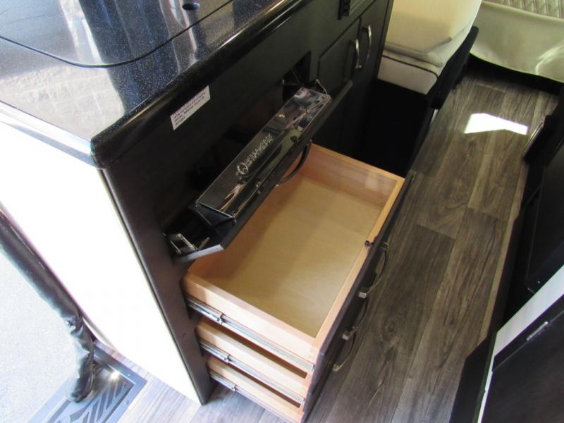 The Midwest Automotive Designs Ford Passage Class B gas motorhome is the luxurious and nimble coach of your dreams! With the Ford Passage, you will have superior craftsmanship which is most evidently seen in the ECO chassis battery charging system, the custom Maybach-style seating with seat belts, the digital touchscreen multiplex controls, and the complete insulation package. The high-style amenities that have been included, like the rear luggage storage and the multiple USB 12V chargers, will also add to the coach's extreme convenience. You will even find an All-In-One utility bay that comes with a power awning with LED light, cable TV input, LED patio light, water fill, 110V outlet, and an exterior shower.