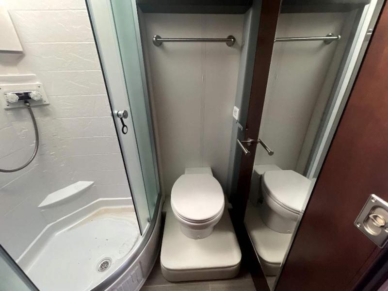 Allow yourself the luxury and freedom to come and go as you please with this Ultra Brougham Class B+ diesel motorhome. You will love the ease and maneuverability of its size for parking and traveling in town as well as the space it offers inside when you are ready to break and park for awhile. The driver and passenger seats swivel around so that you can socialize with the others, and the full bathroom has everything you need to get squeaky clean each morning including a radius shower and a vanity sink. On the outside, you will find a handy pass-through storage compartment for all of your extra travel gear, plus there is even an exterior shower if you need to rinse off before heading inside. At night, a pull-down Murphy bed creates a comfortable space to sleep. In the morning, just fold it up, and you don't even have to make your bed because no one will even see it!