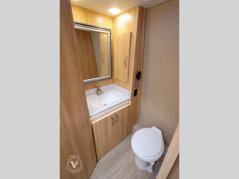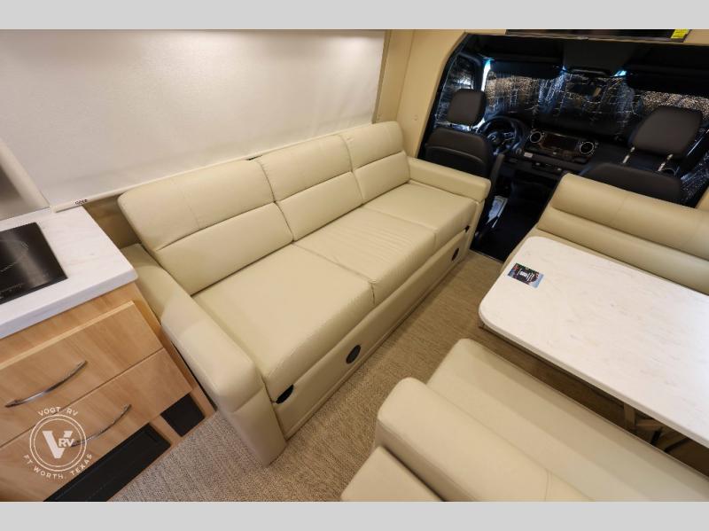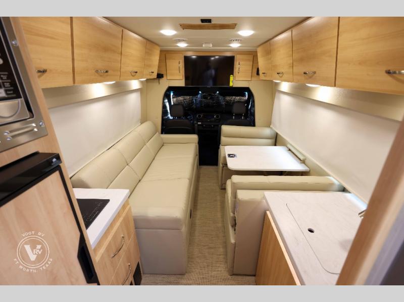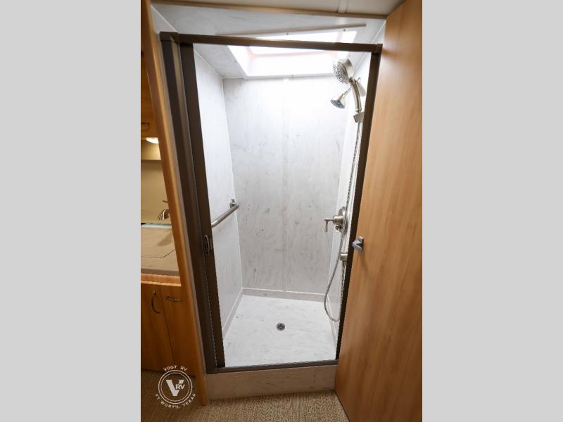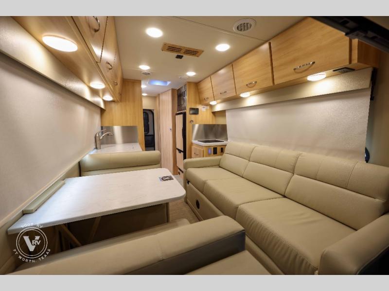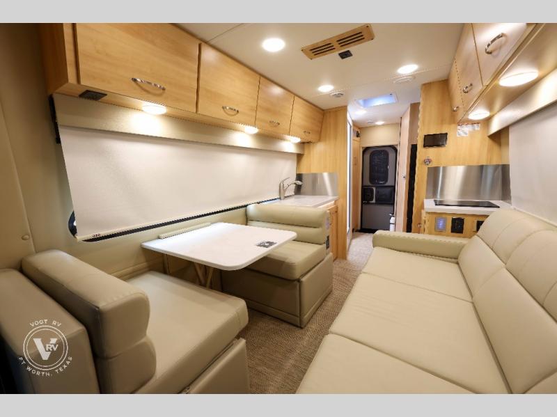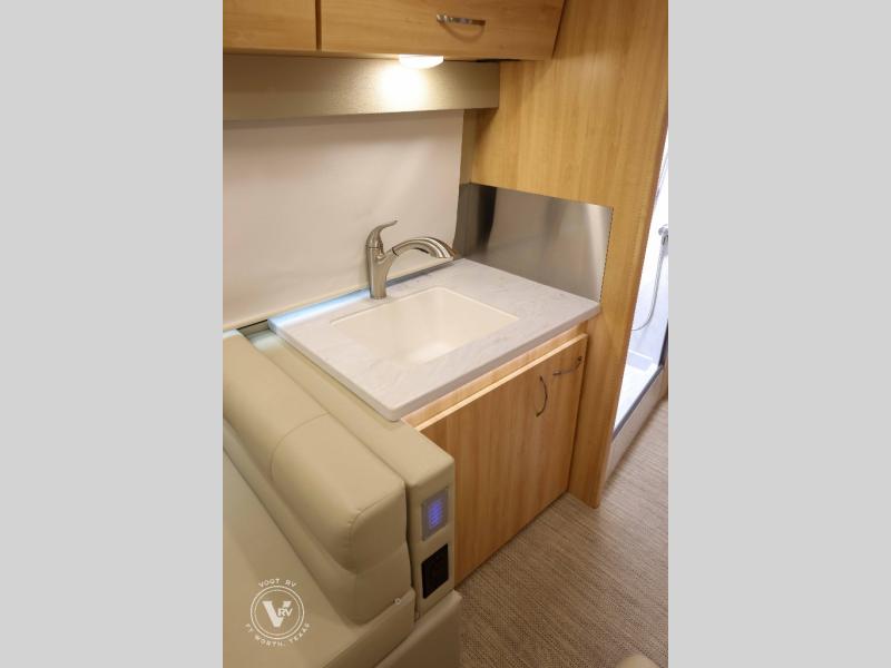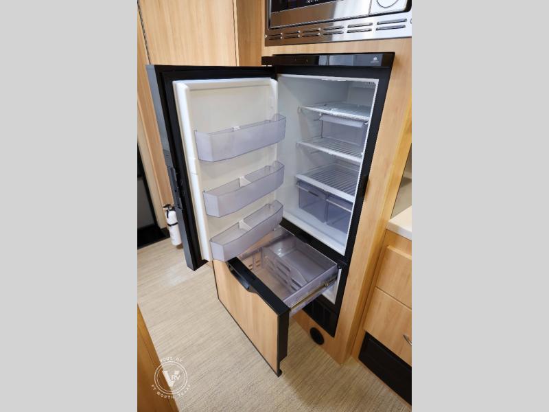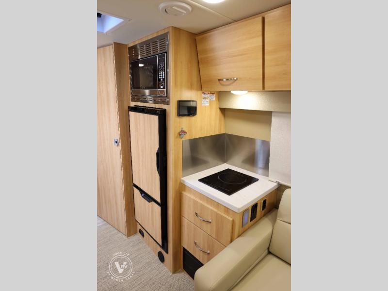 Hit the road in true luxury with this motorhome! The separated bathroom makes it convenient for one to use the private toilet and sink while another cleans up in the 39" x 29" shower. There is also a wardrobe to keep your towels close by and a powered vent fan for ventilation with a rain sensor and reversible functions. This model includes a single sofa and a booth dinette that can convert to a 76" x 84" bed for a great night's rest. You can prepare delicious home cooked meals with a single induction cooktop which can be removed for exterior cooking, a Dometic 6 cu. ft. dual-swing motion doors refrigerator to store any leftovers, and a 1.1 cu. ft. stainless steel convection microwave to heat them up. The Entertainment Center package not only includes a 32" Samsung TV, but also a high performance JBL by Harman Aura in-wall media center with a JBL sub-woofer and JBL 6.5" Coaxial ceiling speakers.