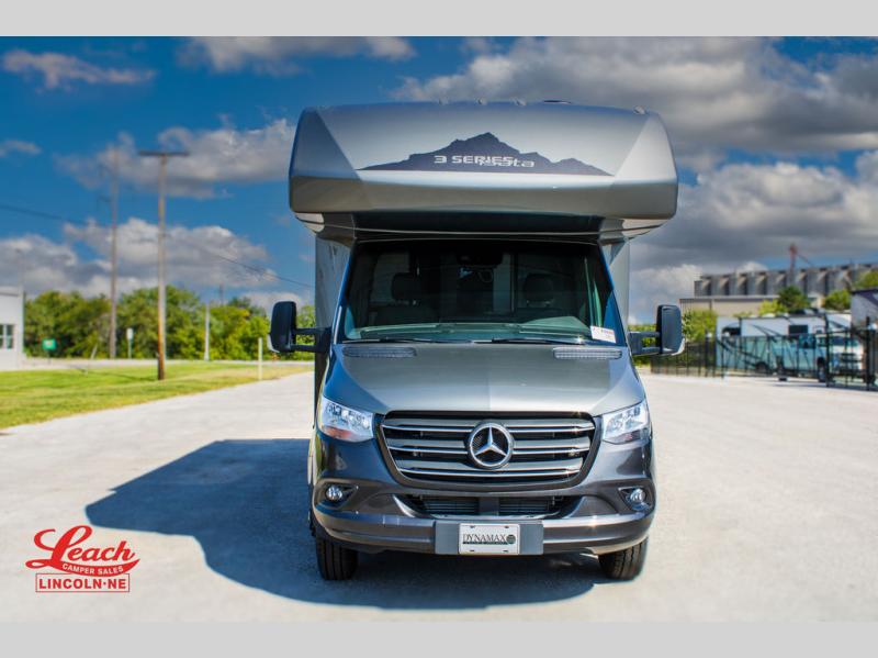 Each one of these Dynamax isata 3 Class C diesel motorhomes were designed to last for years of fun with composite exterior fiberglass with no exterior wood, aluminum-framed roof trusses, and composite flooring substrate. The 3.0L V6 turbo diesel engine is also fuel efficient and a Mercedes-Benz Sprinter chassis holds them together. There is an MBUX 10.25" infotainment system and a quad-view camera system that will let the driver navigate the open road like a pro, and the added safety features are sure to bring you peace of mind. Outside, you'll be wowed by the custom full-body paint package with front-end Diamond Shield paint protection, plus there are exterior speakers, an armless patio awning with LED lights, and seamless rotocast storage compartments for your gear! Each model also includes many interior comforts to make you feel right at home, like the premium vinyl flooring throughout, hardwood craftsman-style cabinetry, solid surface countertops with LED edge lighting and backsplash, and the list goes on!
