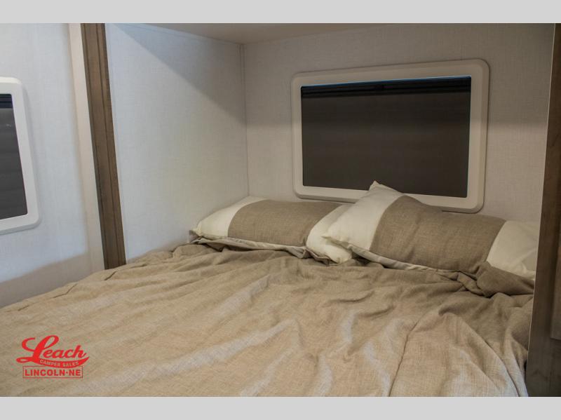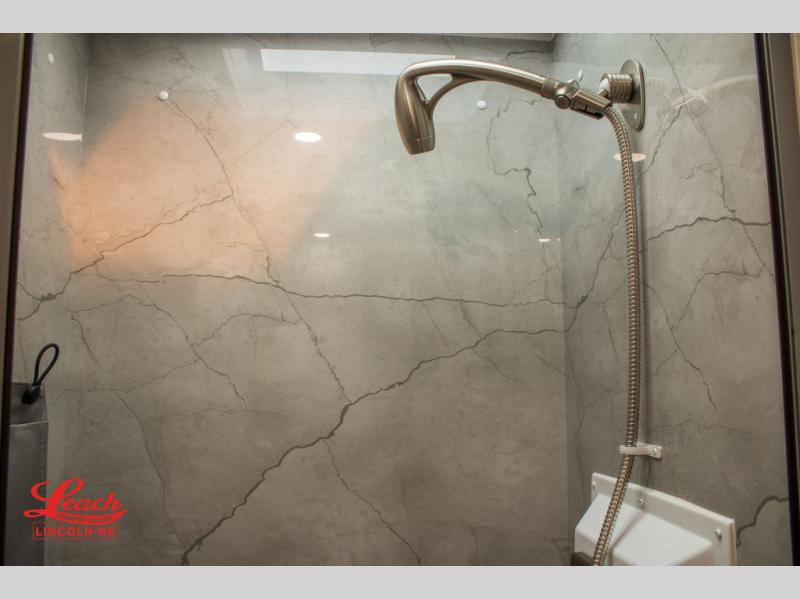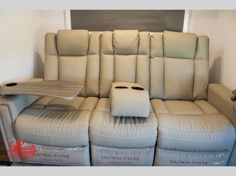 This Freedom Edition coach comes with an insulated cab curtain, an exclusive Freedom Edition full-body paint scheme with two options, and two low-temp lithium house batteries. There is also an 8 cu. ft. 12V two-door compressor-driven refrigerator, a 50 gallon fresh water tank, a 3,000W pure sine wave inverter/charger, and more stand-out features! Start each morning feeling well rested after sleeping on the corner queen bed then head to the rear corner bathroom to freshen up in the shower with an Oxygenics body spa RV shower head and a skylight above for added headroom and natural lighting. Now that you're ready for the day, you can grab some eggs from the refrigerator and fry them up on the two burner induction range then enjoy them at the booth dinette. The kitchen also has a countertop extension for more meal prepping space and a convection microwave oven to pop a bag of popcorn before watching your favorite movies on either the living room 32" LED TV or the 32" LED smart TV across from the bed. You could even switch things up by replacing the booth dinette with an optional 3-seat power recliner, and adding a cab over bunk option!