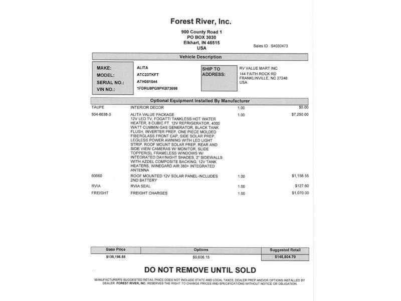 New 2024 EAST TO WEST Alita 23TK Motor Home Class C
