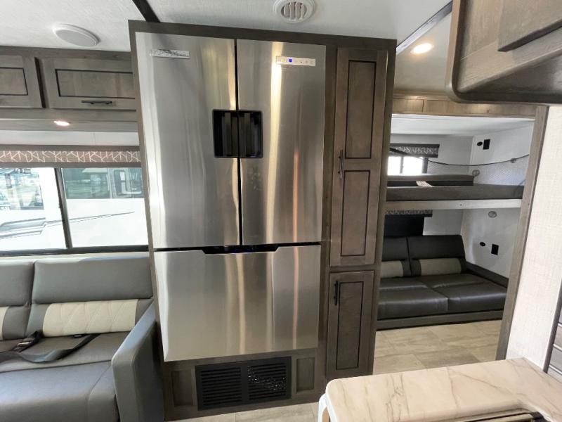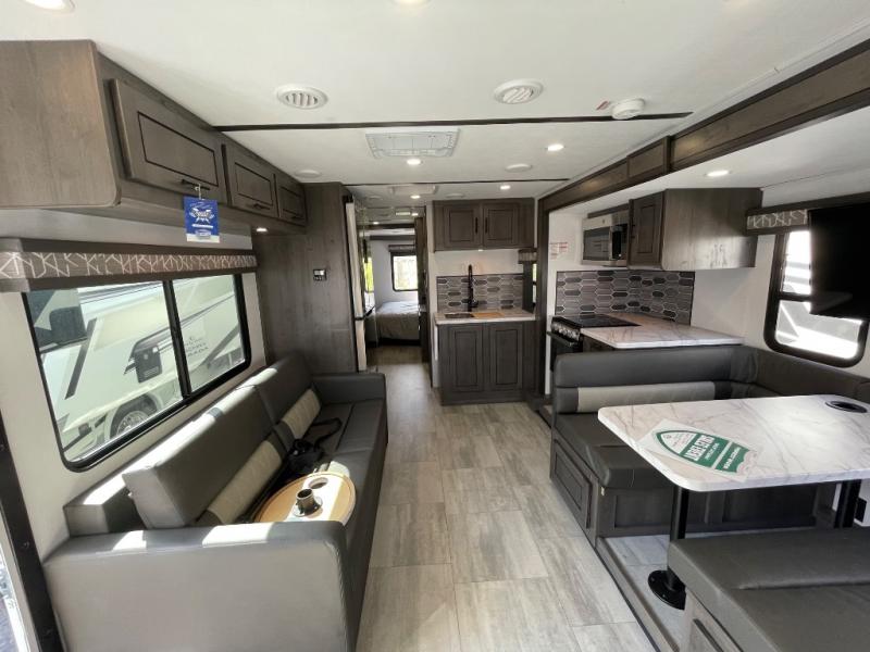 With each FR3 Class A gas motorhome by Forest River, you will find an easy-to-drive coach with a spacious interior allowing you to gather with friends and family with convenience and style found throughout! Each is built with vacuum-bonded construction, a one-piece fiberglass roof with extended rain spouts, a steel firewall and A-pillar extension, Bi-LED headlamps and lower LED fog lights, and grey Rotocast storage boxes with drains, plus more! Inside, you will enjoy black hardware, appliances, plumbing fixtures, and a glass shower door frame. Plus, you will also find a stainless steel kitchen sink with a bamboo cutting board and roll-up dryer, heavy-duty full-extension ball bearing drawer guides, dual-access dinette storage with doors, and nightstands with charging stations to keep your cellphones ready for whatever is next. Make your selection today!