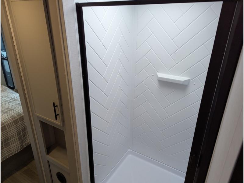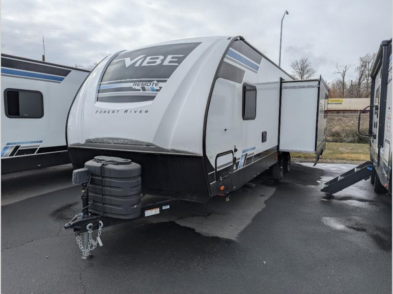 Each Vibe travel trailer by Forest River includes Hyper Lyte construction and a durable laminated "Aluma Frame" for years of use. The heated and enclosed underbelly allows you to extend your camping season, and the walk-on truss roof with XTRM PVC roofing will be easy to keep clean. Inside, you'll enjoy best-in-class panoramic windows, a 12V oversized refrigerator, plus screwed and glued cabinets with residential steel ball bearing drawer guides on all drawers. These models also include cable and satellite prep and a digital TV antenna with a booster so you can stay connected to the outside world if you choose. Make the easy choice and choose a Vibe travel trailer today!