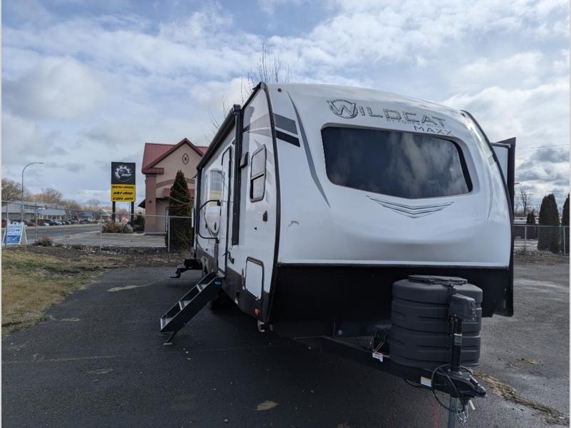 Each Forest River Wildcat MAXX travel trailer is constructed with gel-coated fiberglass sidewalls and a full walk-on roof so you can easily clean the top of your unit after camping. The Maxx Insulation Package will help extend your camping season with features such as, an enclosed underbelly, 1" insulated slam-latch baggage doors, and R-10 foam with a Maxx-Strong insulated floor. Head inside to find shaker style cabinet doors, fully glued residential vinyl flooring, upgraded light fixtures, and stainless appearance appliances. The mandatory Dynamic Technology Package includes a frame-mounted receiver hitch, a battery disconnect, and a 200-watt solar panel for off-grid capabilities. You will also enjoy the mandatory Peak Package with a power tongue jack, a 21" 2-In-1 range and oven, an on-demand tankless water heater, and more convenient features.