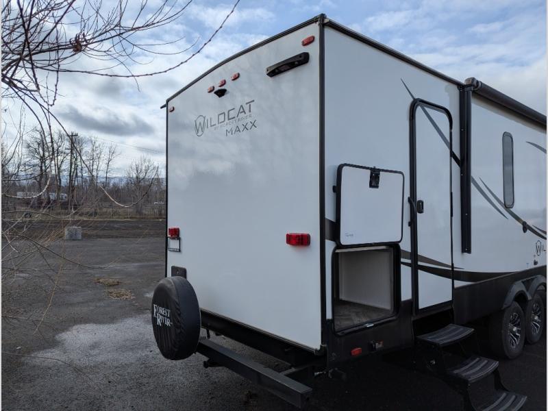 Each Forest River Wildcat MAXX travel trailer is constructed with gel-coated fiberglass sidewalls and a full walk-on roof so you can easily clean the top of your unit after camping. The Maxx Insulation Package will help extend your camping season with features such as, an enclosed underbelly, 1" insulated slam-latch baggage doors, and R-10 foam with a Maxx-Strong insulated floor. Head inside to find shaker style cabinet doors, fully glued residential vinyl flooring, upgraded light fixtures, and stainless appearance appliances. The mandatory Dynamic Technology Package includes a frame-mounted receiver hitch, a battery disconnect, and a 200-watt solar panel for off-grid capabilities. You will also enjoy the mandatory Peak Package with a power tongue jack, a 21" 2-In-1 range and oven, an on-demand tankless water heater, and more convenient features.