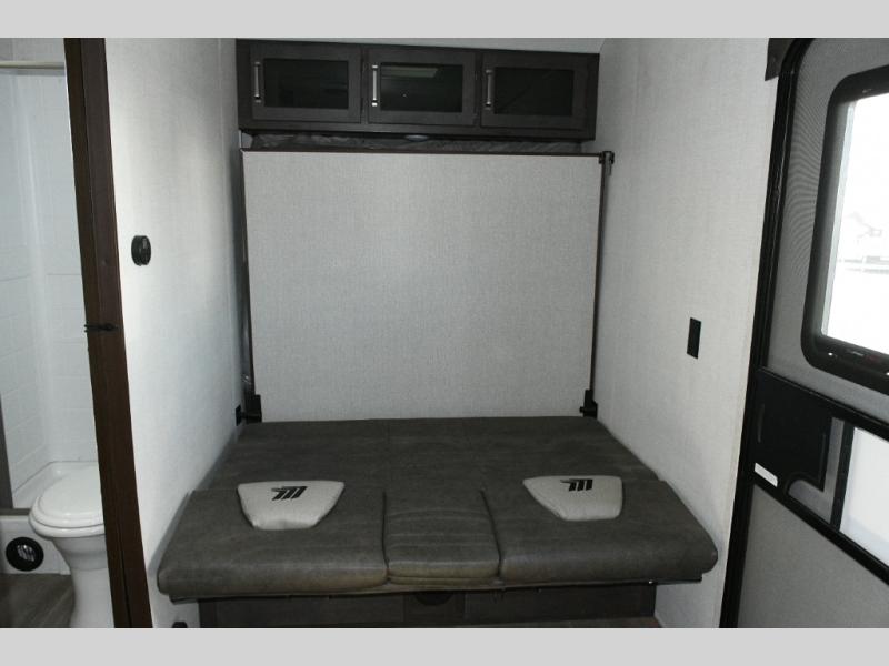 Adventure meets comfort in the 2024 Grand Design Momentum MAV 22MAV, a toy hauler travel trailer designed for fun on the road or at the lake. The 13' 6" garage offers ample space for ATVs, bikes, or gear, complete with 2,500 lb. tie-downs to secure your toys. Guests can sleep comfortably on the top bed or rear rollover sofa with table, while the front corner queen Murphy bed provides storage drawers and overhead space for personal belongings.