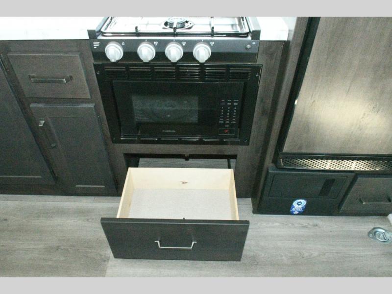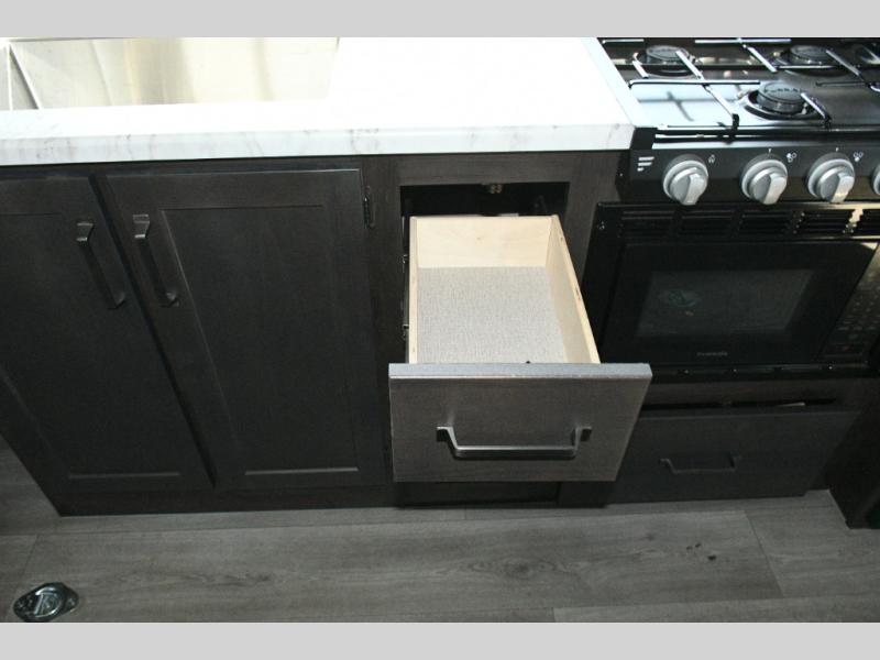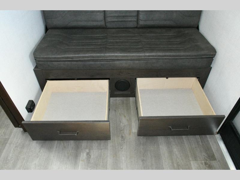 The Momentum MAV is built for versatility and off-grid adventures. Enjoy motion sensor lights, USB outlets, and underbed storage with gas strut lift, keeping your campsite organized. Comfort is guaranteed year-round with a 30K BTU furnace and 15K BTU ducted air conditioning, while the standard Solar Package with 180W panel, 40 Amp Bluetooth charge controller, and 12V refrigerator lets you camp longer in remote locations.