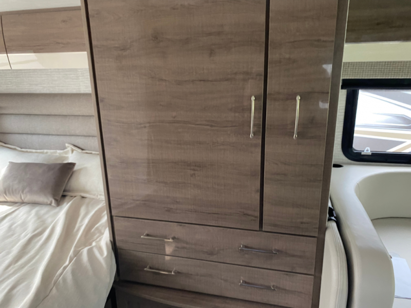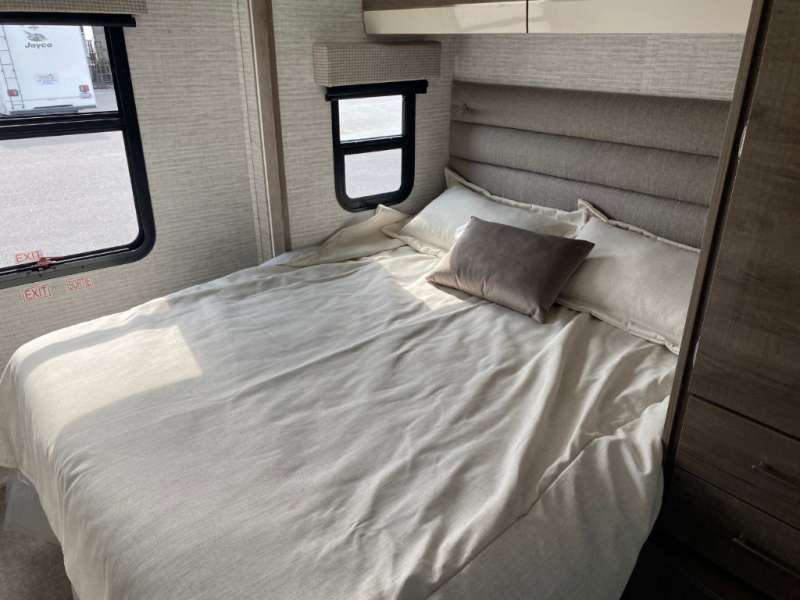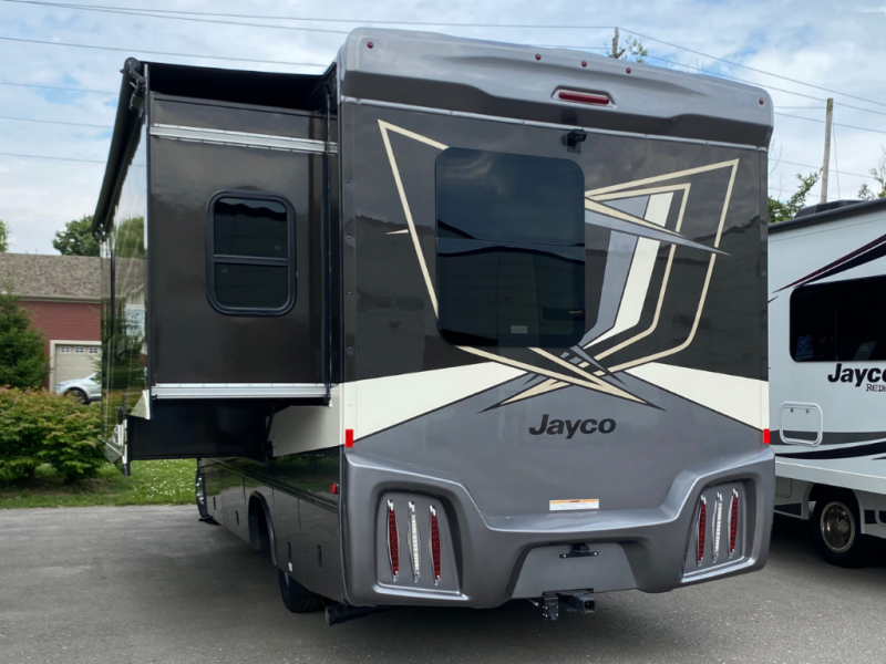 Each Melbourne Prestige Class C diesel motorhome by Jayco includes sidewall, rear wall and slide room walls that are bonded together with Stronghold VBL lamination to create the lightest, yet strongest construction available in the RV industry. There is also a one-piece, seamless front cap that resists wear and tear from years on the road. The interior offers an overhead bunk with 750 lbs. capacity which is way over the industry standard and allows for more overnight guests. And you will find seatbelts installed in every designed seating location to keep your favorite people safe. Other standout features include the Firefly total coach control system giving you full control of key operations from a wall-mounted touchscreen and mobile app, a Truma AquaGo Comfort Plus tankless water heater, a water filtration system, ball-bearing drawer guides, and an 80-inch interior ceiling height with a padded vinyl ceiling giving you more space to enjoy.