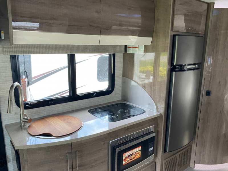 Get away from the hustle and bustle of your everyday routine and explore in comfort in this motorhome that offers everything you need, plus some! Once at your destination you can easily setup the full wall slide for more interior floor space and the 14' awning that offers protection from the elements when relaxing outdoors. You can then sit at the U-shaped dinette with stow away pedestal legs or swivel the driver and passenger seats to enjoy the LED TV. The cook will have full amenities such as a two-burner drop-in cooktop and convection microwave to make warm meals, and a 6 cu. ft. refrigerator to store the cold items. There is a full bathroom to get cleaned up before bedtime, a queen bed and a rear window to enjoy a good night's sleep and great views of your campsite, plus a wardrobe for your clothing. And your family or friends can sleep on the cab-over bunk or the dinette offers extra sleeping space once converted.