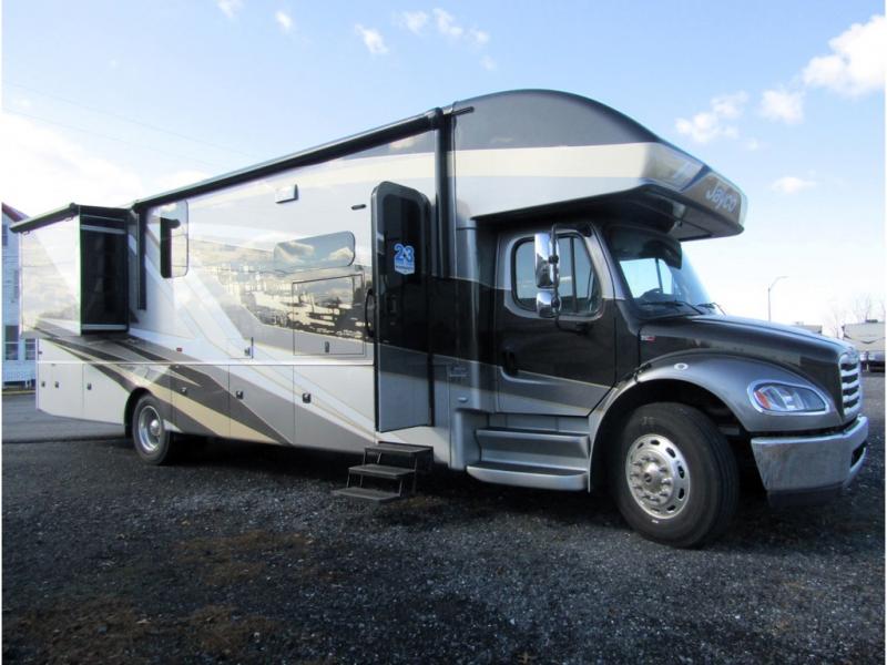 Experience comfort and space with each one of these Jayco Seneca Class C diesel motorhomes! The unique front end diesel Freightliner S2RV chassis won't cramp the cabin, and the superior towing power allows you to tow a toy or car while keeping it at a lower weight point. You will find that these models are built sturdy with a powerful blend of precise handling and renowned stability with features like the StrongholdVBL lamination, the JRide Premium system, and the one-peice, seamless, fiberglass roof that will withstand all of your adventures. The Firefly total coach control system simplifies your camping experience with the ability to monitor and control key RV features in the palm of your hand on your phone or tablet. Come find the right model that meets your needs today!