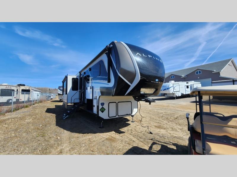 Luxury is not an option, it is a standard with each one of these Keystone RV Alpine fifth wheels! A 8' 4" wide body construction will create an open, residential feeling, and cutting-edge technology will provide a hassle-free camping experience. The Tru-Fit slide construction is more durable and minimizes motor structural stress, as well as resists leaking, and the Blade Pure airflow system provides residential comfort with its high-performance. Each fifth wheel includes designer flooring throughout, stunning solid wood cabinet doors, luxurious crown molding, and solid surface countertops in the kitchen. The SolarFlex Protect 200 comes standard or you can choose the optional SolarFlex Discover 440i for even more off-grid capabilities. The exterior also includes an outside shower with hot and cold water, Lippert strut assisted SolidSteps, Hitch Vision with LED lighting, and many more conveniences!
