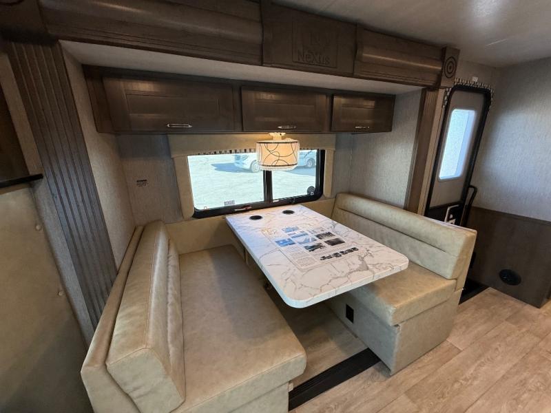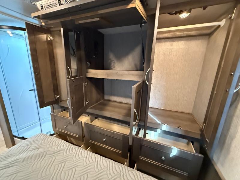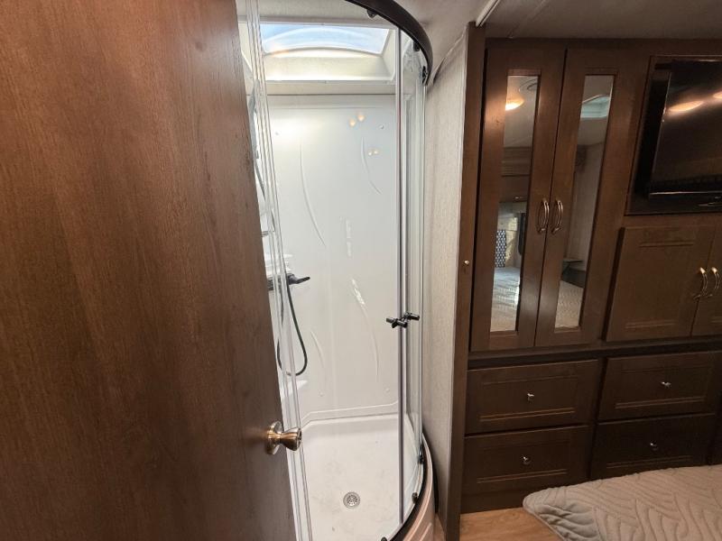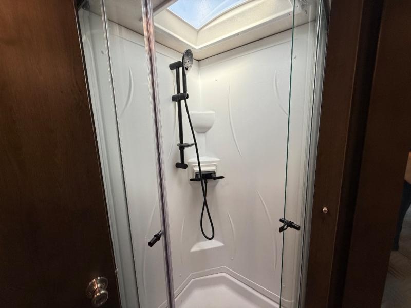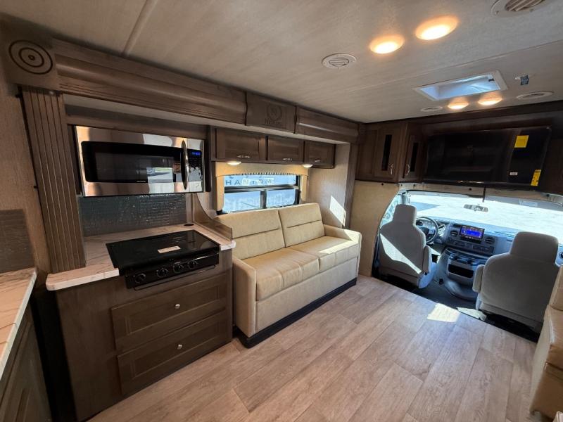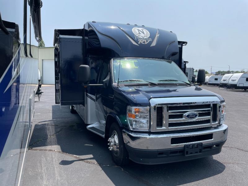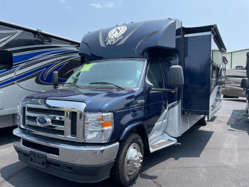 Sleeps5 Slides3 Ext Width 8 ft Ext Height 10 ft 7 in Int Height 6 ft 5 in Hitch Weight 500 lbs Fresh Water Capacity 40 gals Grey Water Capacity 28 gals Black Water Capacity 28 gals Furnace BTU 30000 btu Fuel Type Gas Engine Ford V8 Chassis Ford E450 Fuel Capacity 55 galsWheel base 208 in Available Beds RV Queen Refrigerator Type Residential Cooktop Burners 3 Number of Awnings 1 LP Tank Capacity 12.2 gals Water Heater Type Gas/Electric AC BTU 13500 btu TV InfoCab 32" LED TV Awning Info Electric w/LED Lighting Shower Type Radius Electrical Service 30 amp