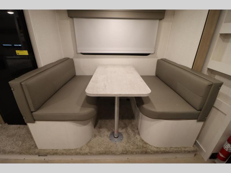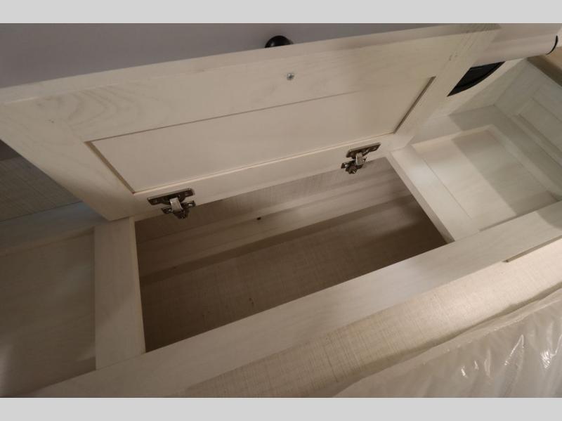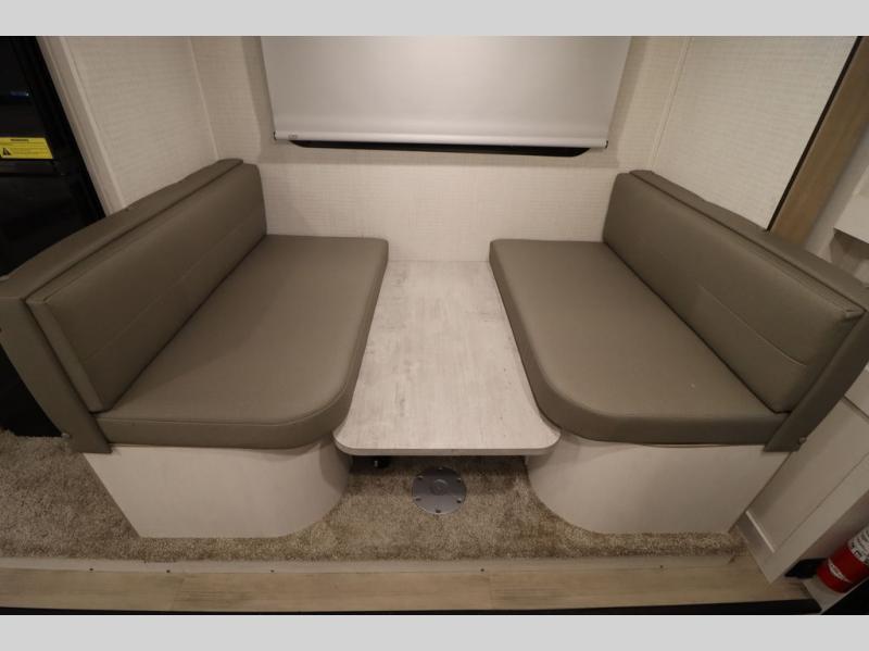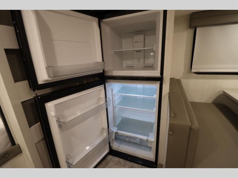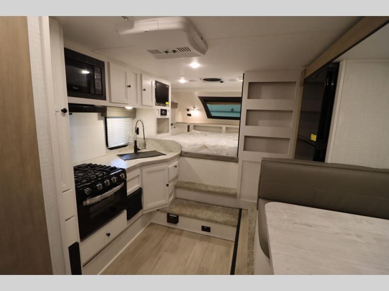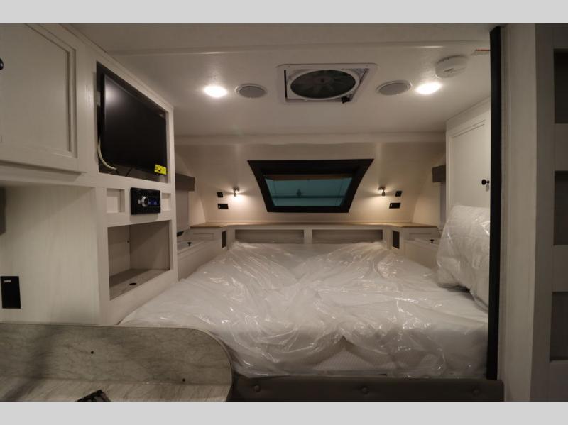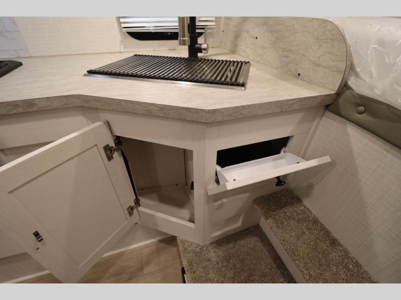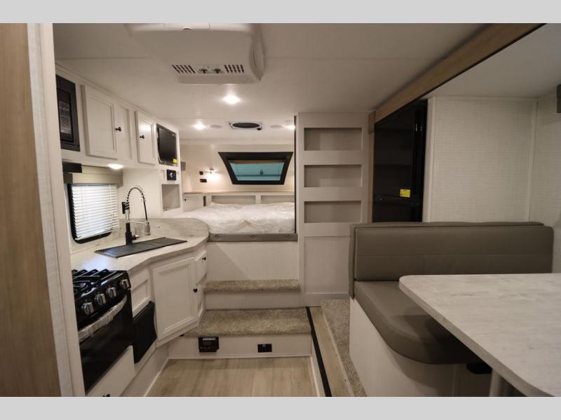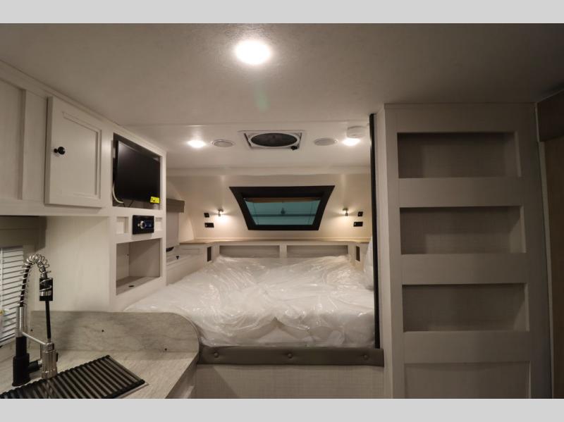 Start adventuring in true comfort with this hard side truck camper! The 40" x 69" booth dinette slide offers a comfortable place to enjoy your meals and even transform into an extra sleeping space, plus it is right next to the 11 cu. ft. 12V refrigerator so you don't have to go far for a cold beverage. You can also choose the optional theater seating in place of the dinette for even more comfort. The wardrobe/pantry is good for double use and is next to the wet bath so you can easily grab a towel. Enjoy a good night's rest each night on the front queen bed with a wrap around nightstand, chests on either side, an entertainment center, and a closet to keep your clothes looking their best!