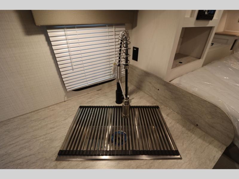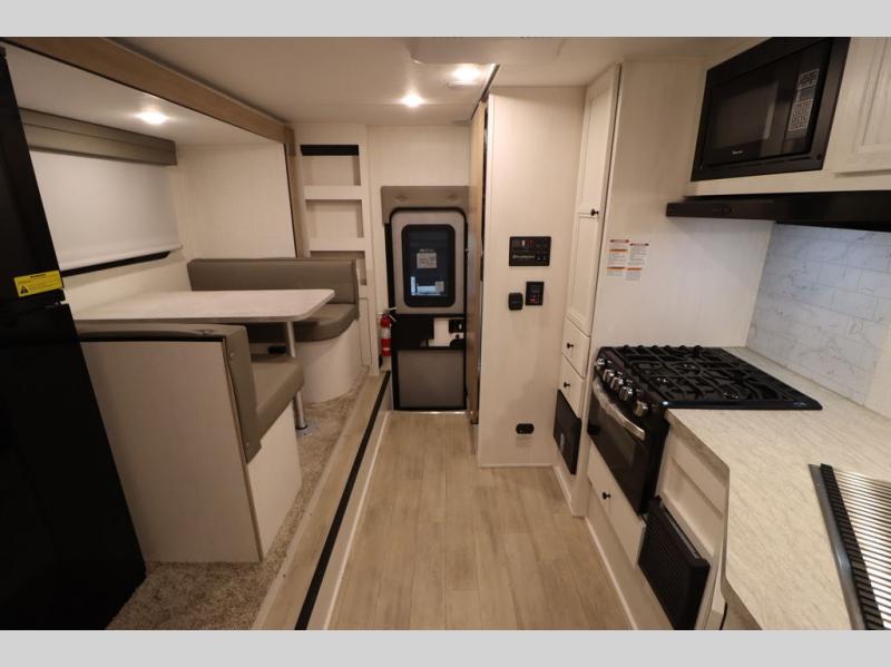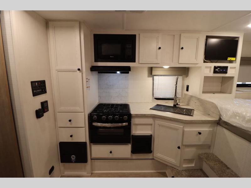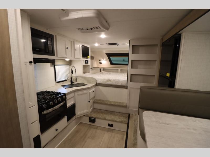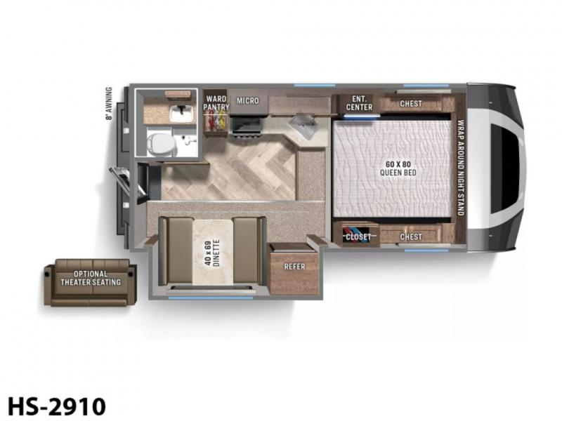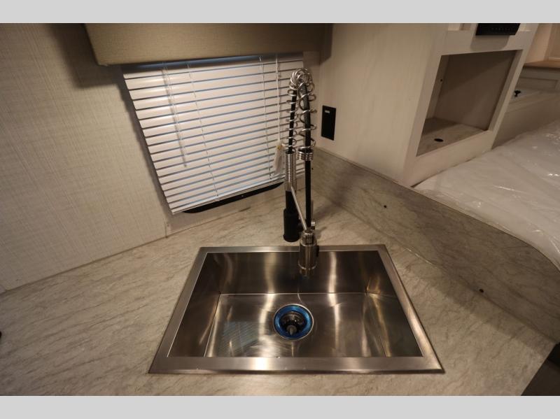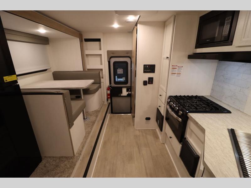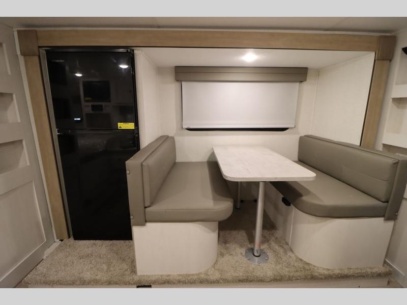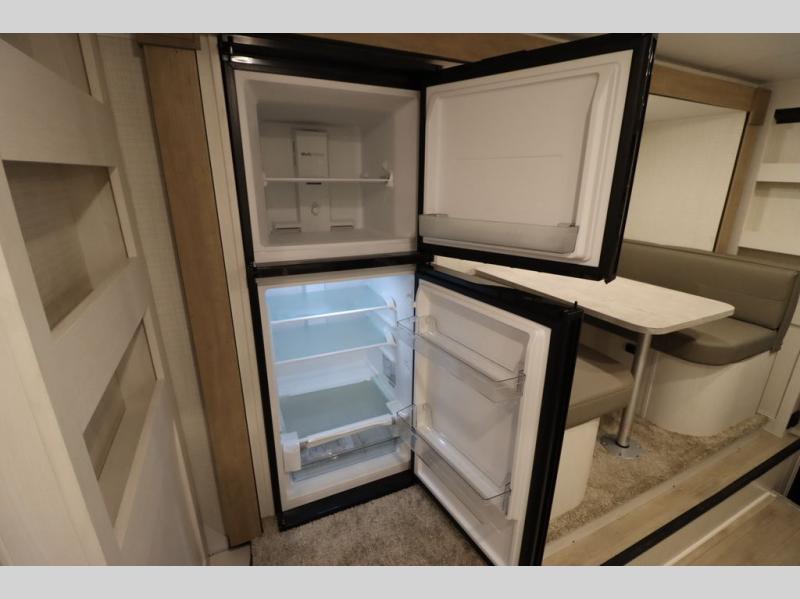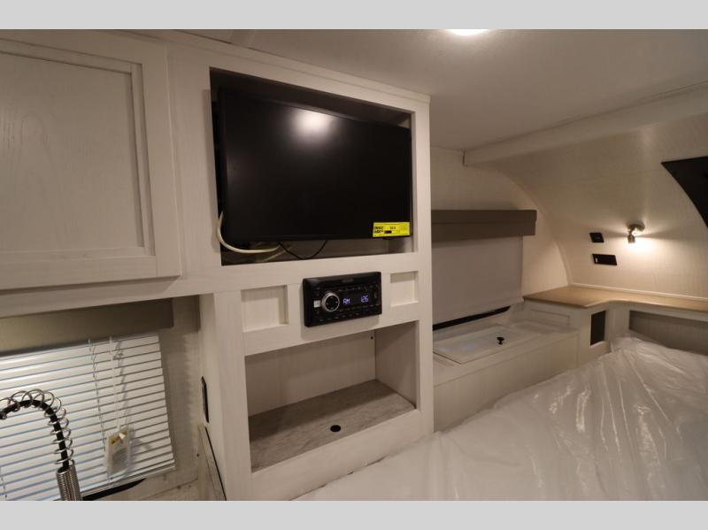 Start adventuring in true comfort with this hard side truck camper! The 40" x 69" booth dinette slide offers a comfortable place to enjoy your meals and even transform into an extra sleeping space, plus it is right next to the 11 cu. ft. 12V refrigerator so you don't have to go far for a cold beverage. You can also choose the optional theater seating in place of the dinette for even more comfort. The wardrobe/pantry is good for double use and is next to the wet bath so you can easily grab a towel. Enjoy a good night's rest each night on the front queen bed with a wrap around nightstand, chests on either side, an entertainment center, and a closet to keep your clothes looking their best!