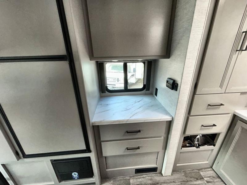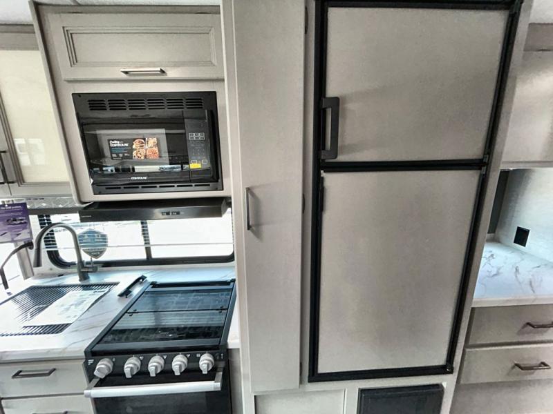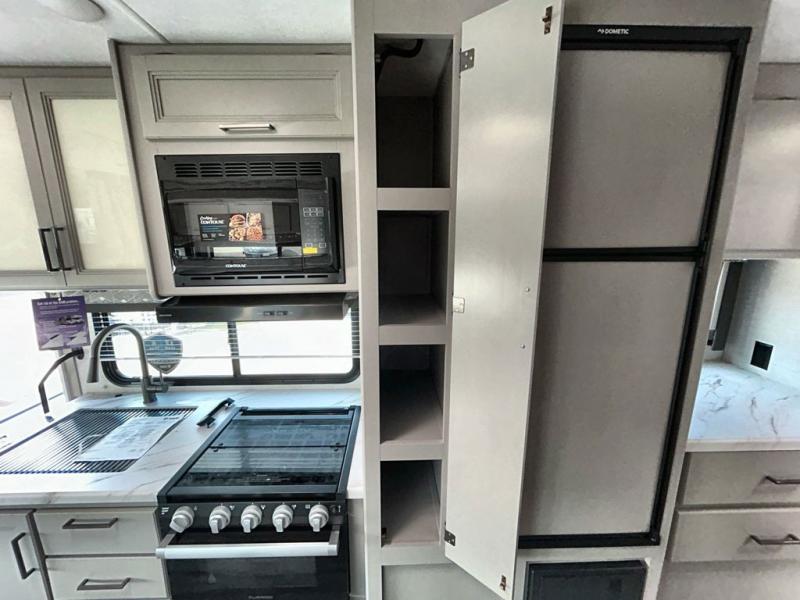 Its time to enjoy life and venture to see new places, enjoy events and visit with friends in your state or even further! You will love having a living area as well as a bedroom with the versatility of the Murphy bed and sofa combination. And the curtain allows you privacy when you have overnight guests sleeping on the dream dinette and the cab over bunk. There are full kitchen amenities for the cook including a 12V refrigerator and a pantry to store all the goodies. And the sliding door into the rear full bathroom saves even more space for you to enjoy getting cleaned up and/or ready for bed or the next adventure.