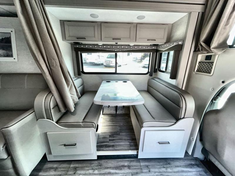 With any Four Winds Class C gas motorhome, you can travel in a trustworthy Ford E-Series chassis with 325HP, or a Chevrolet chassis with 401HP if you choose that option which is available on several models. Each is built with welded sidewall cage construction and a welded tubular aluminum roof, a one-piece fiberglass cap, and includes a slick fiberglass exterior with graphics package for style and years of enjoyment on the open road. Inside, you will enjoy the well-equipped kitchen, the spacious bathroom, the sleeping accommodations and the Winegard ConnecT 2.0 WiFi/4G/TV antenna that allows you to stay connected. With several floorplans to choose from and options to add, you will surely find one that fits your family's needs or your friend's approval. Choose today!