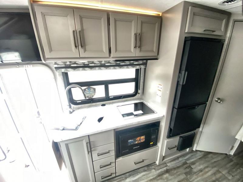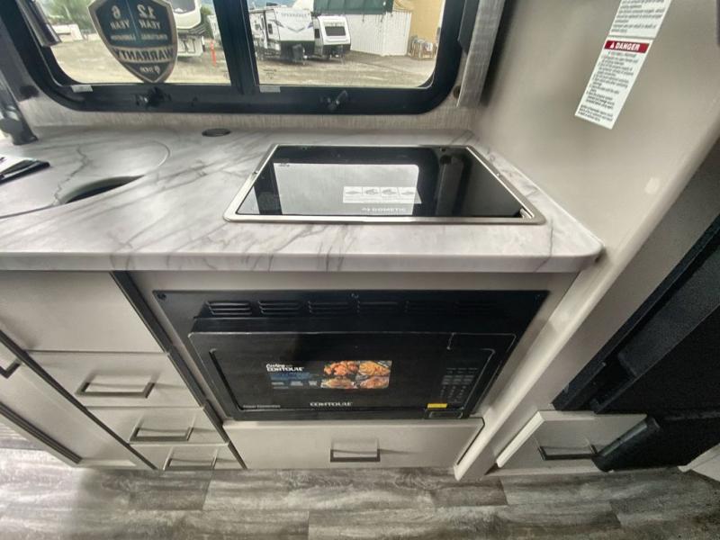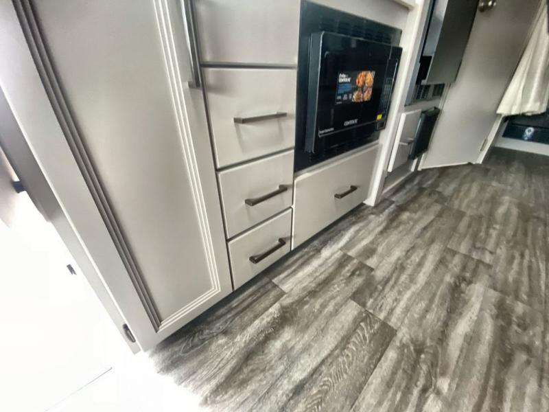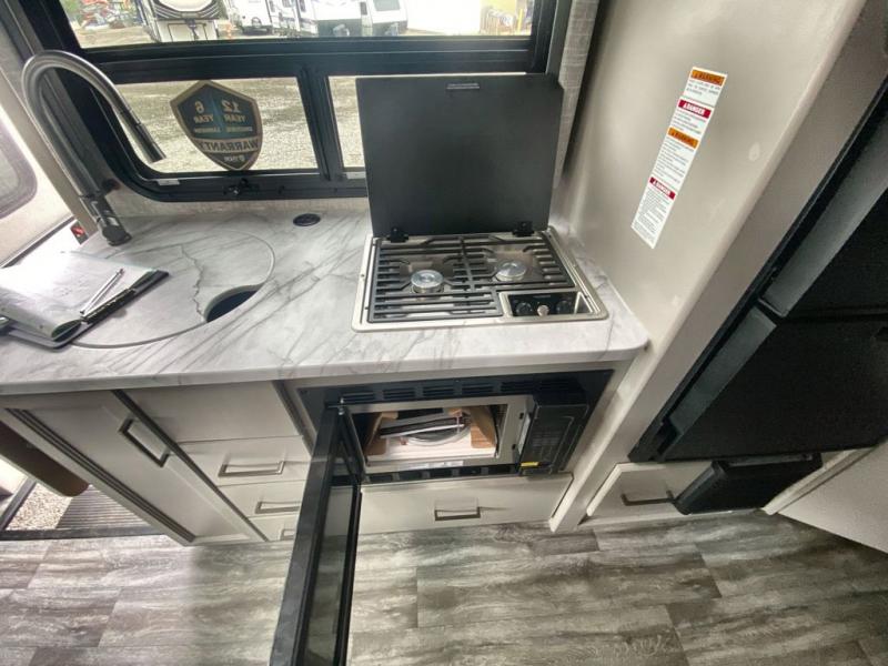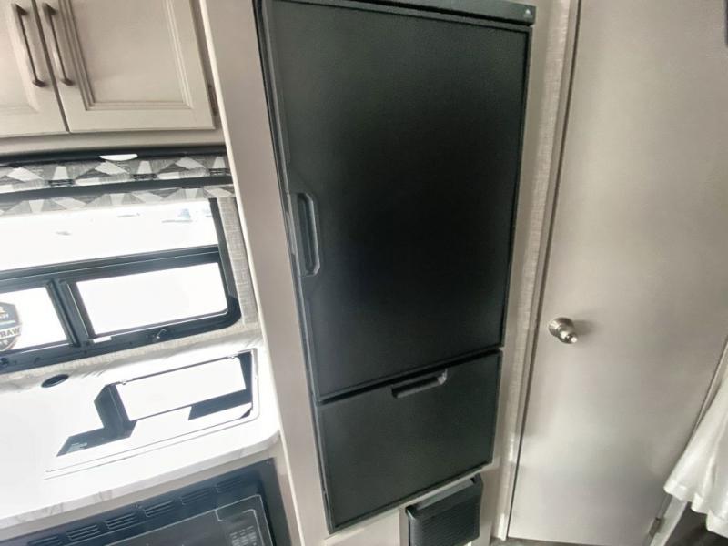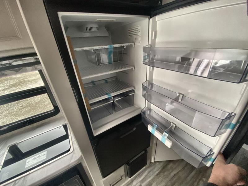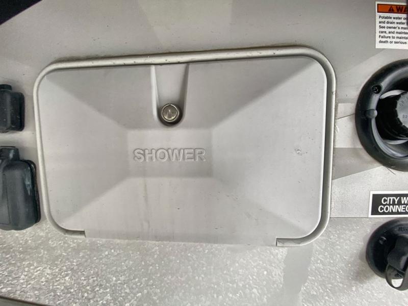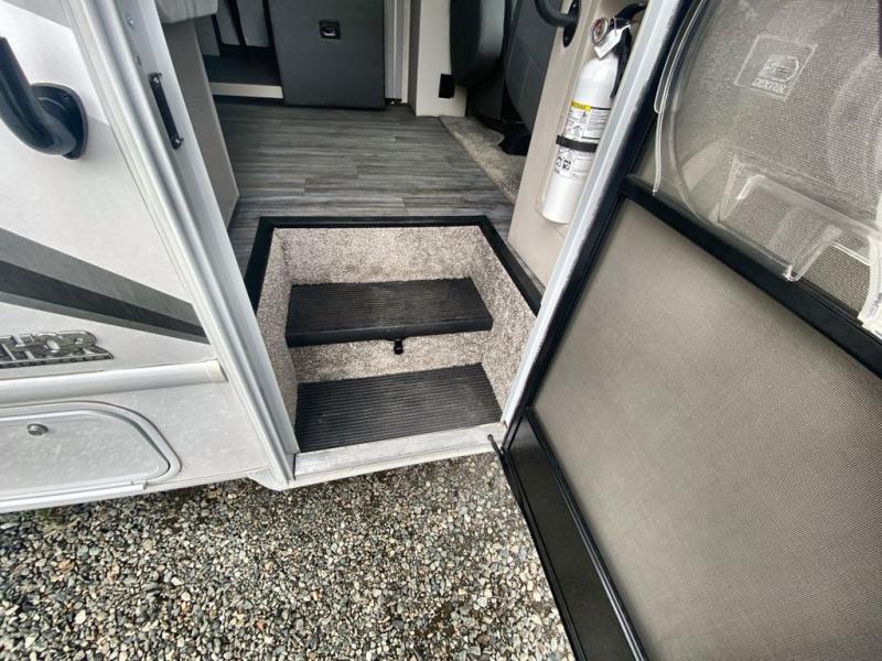 You will have everything you need in this motorhome for a comfortable trip! Create your own private bedroom with privacy curtain to close off the flip-up RV queen bed with cushioned seating underneath, the wardrobe, and the 32" TV. You can prepare delicious home cooked meals with the electric start two burner gas cooktop, keep your perishables fresh in the 12V dual door refrigerator, and enjoy your meals at the 68" dream dinette. There is also an entryway 32" TV to watch your favorite movies and a built-in skylight for more natural lighting. Start and end your days feeling squeaky clean in the rear corner bathroom with the 24" x 32" shower!