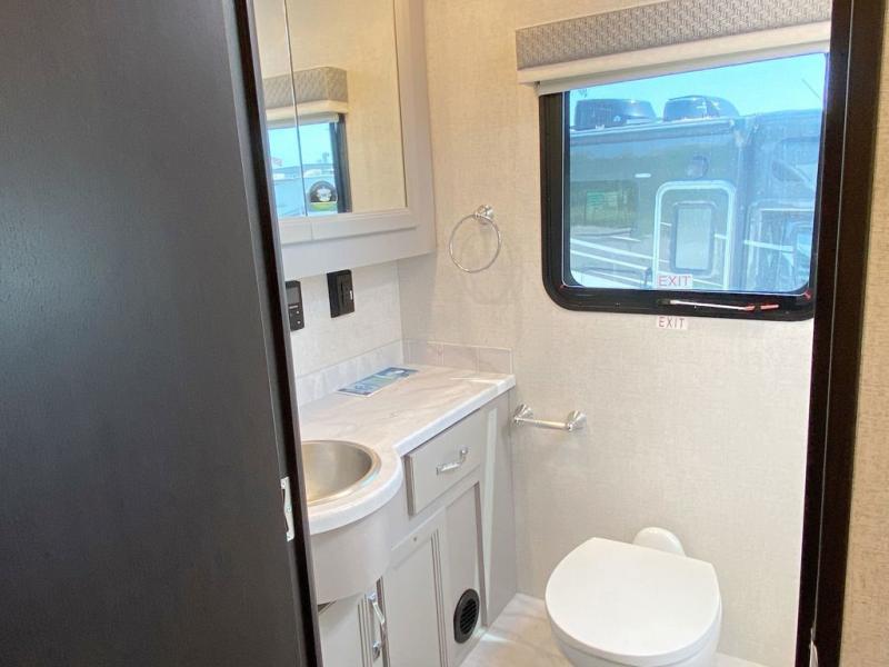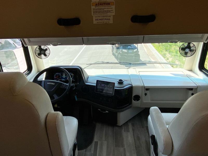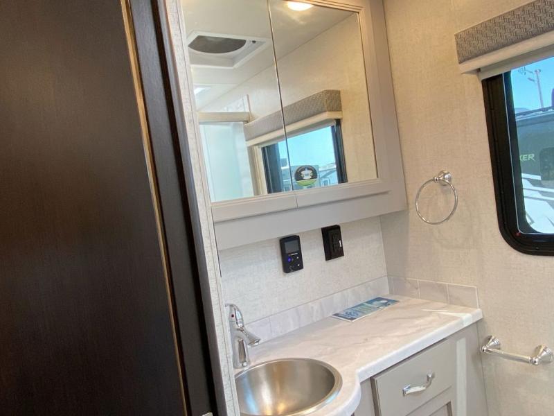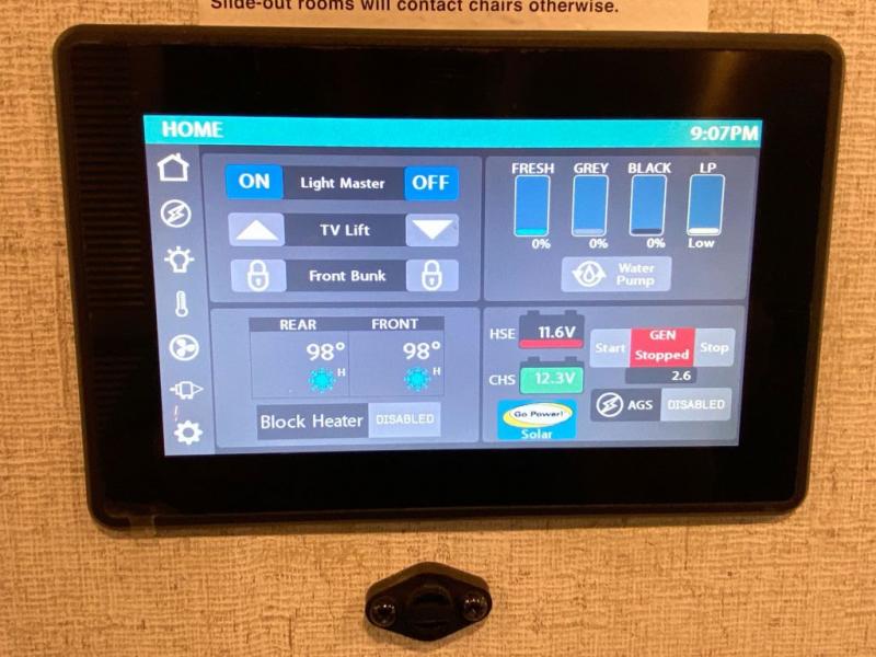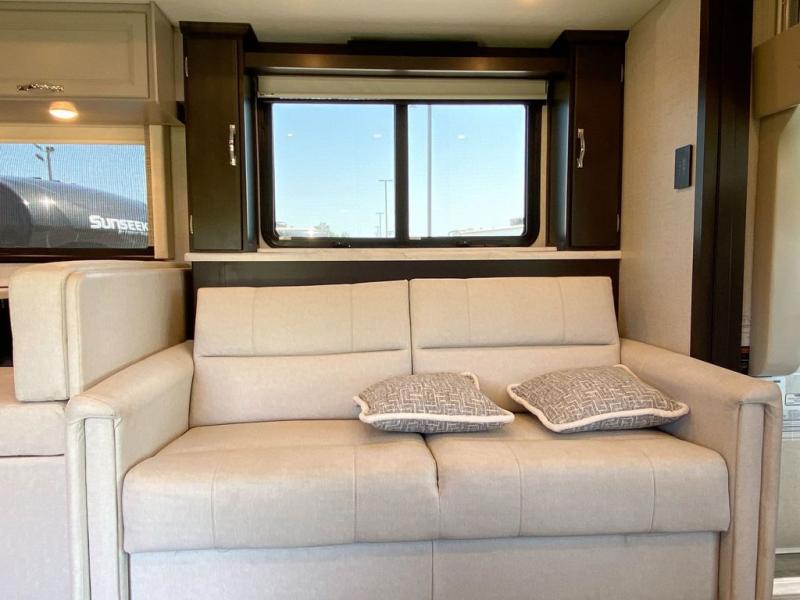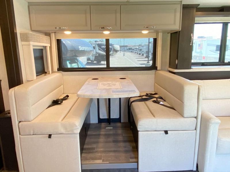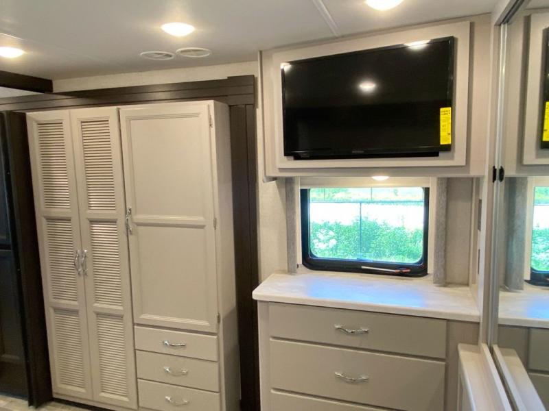 You can't beat the luxury you'll find in this motorhome that can sleep seven each night. You'll love waking up each day on your Tilt-A-View inclining king bed, and there is a full-length closet to store all your clothes. The stacked washer and dryer will allow you to start a load of laundry before you head to the kitchen for breakfast. Whether you're making eggs on the electric induction cooktop, or making oatmeal in the convection microwave, you're sure to find everything you need in this Palazzo kitchen. The main living area will be a spot everyone will love to gather in, especially with a Dream Dinette, a trifold sofa, plus inclining theater seats. There is an overhead bunk the little ones will love, and the retractable TV and fireplace will make this whole area feel more like home!