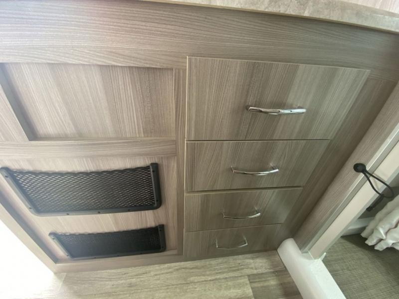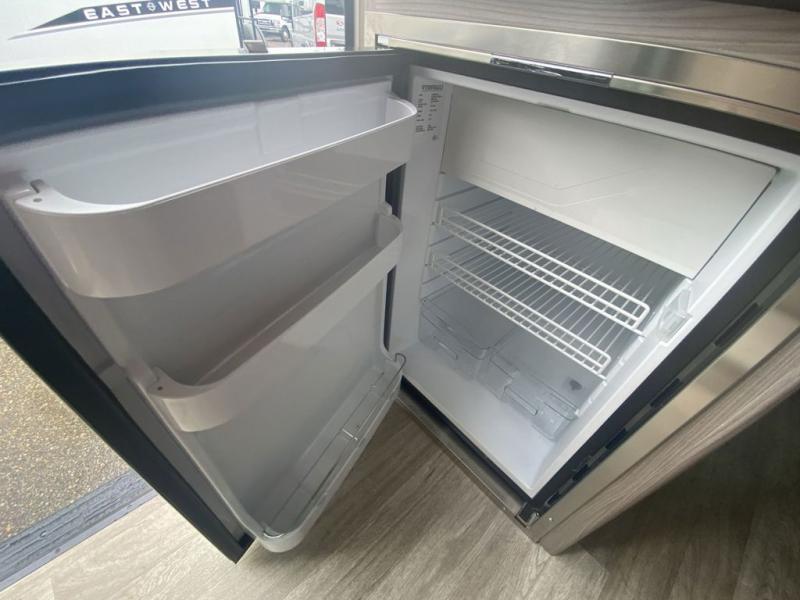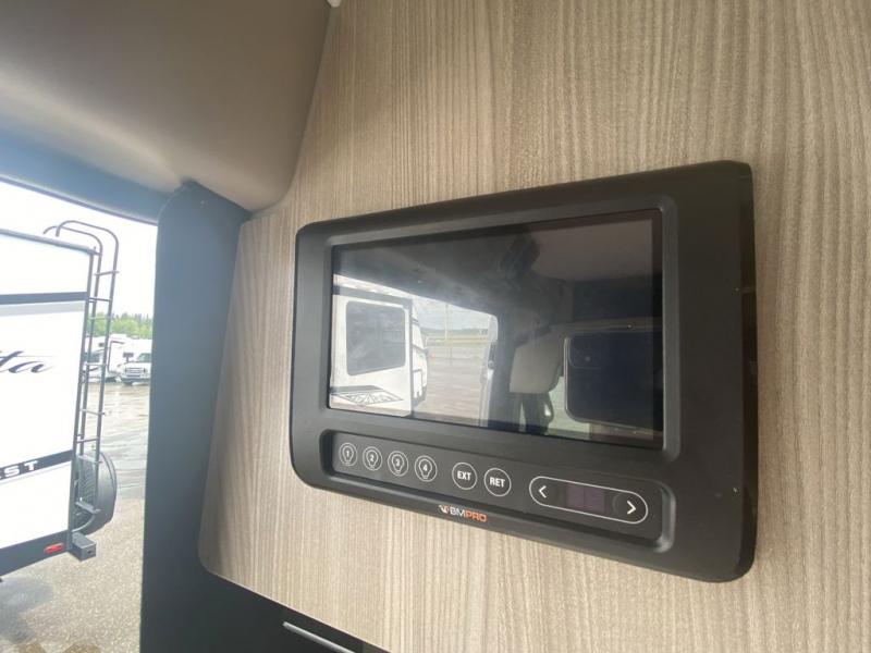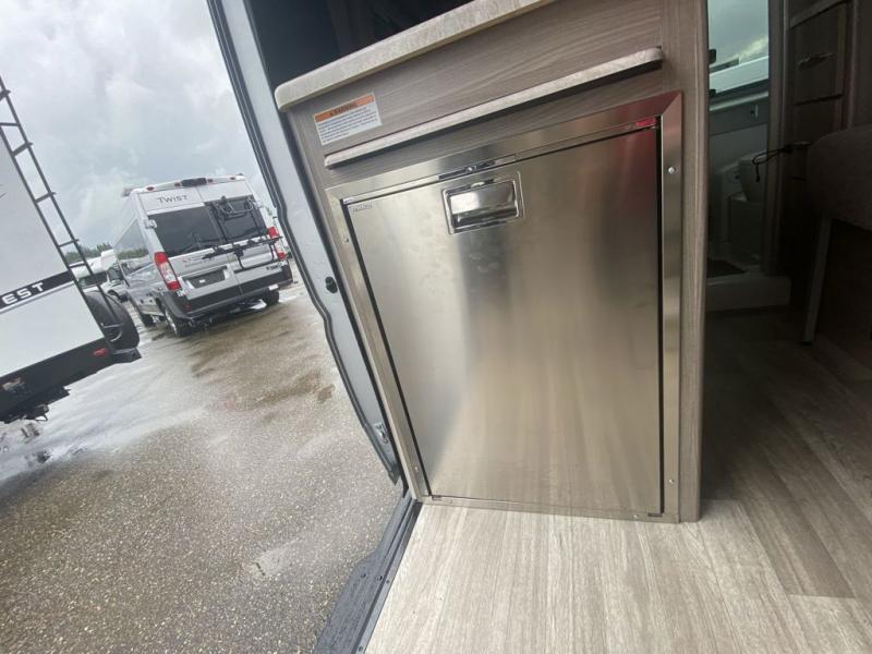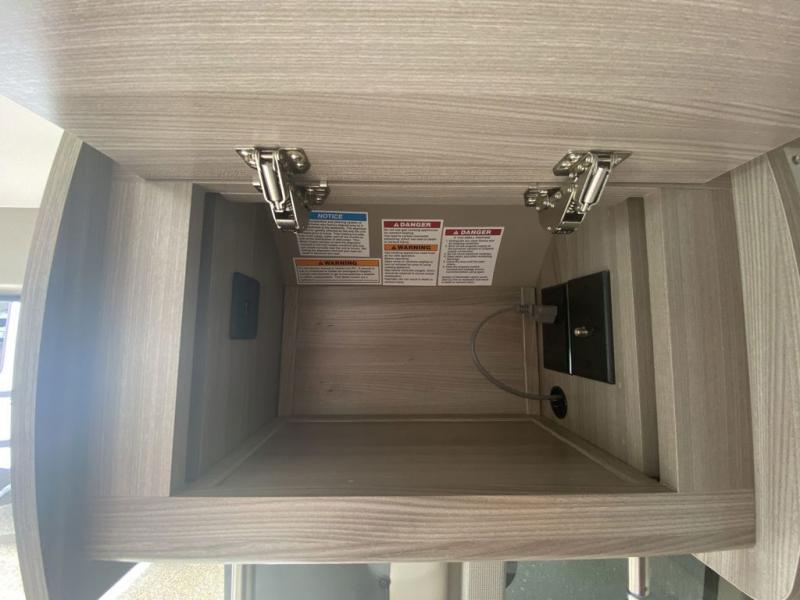 You can go wherever your heart desires with this motorhome! The rear wet bath adds comfort and convenience, plus there is storage to keep your towels close. You can prepare home cooked meals while at the campsite or cook some burgers for a tailgate with the portable cooktop while enjoying a cold beverage kept in the single door 12V electric refrigerator. The swivel captain's chairs are not only comfortable for driving, but also for socializing with guests. The 72" x 47" pull out bed has a removable table and is across from the electronics cabinet which has a HDMI cable and USB charging port.