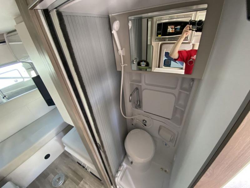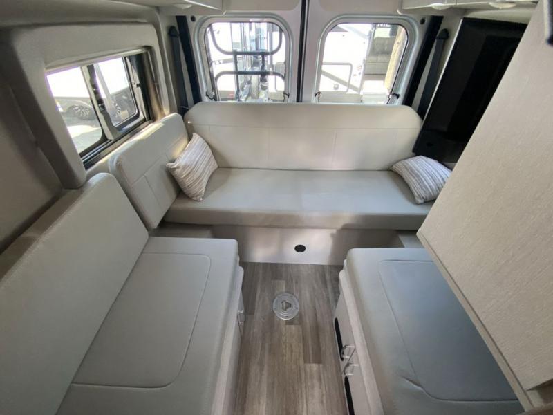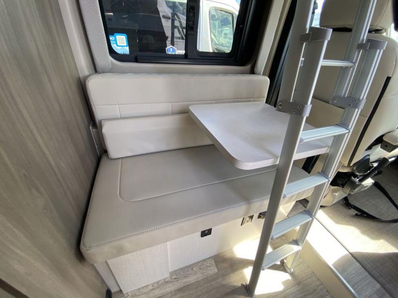 You'll want to take this Tellaro Class B gas motorhome out on the road as your permanent home when you see the comfort it provides! There is a removable table on a swing arm in front of a seating area, so you have a place to work each day. This area can also be used for dining later on in the day. The large skylight in the living area provides you with sunshine while you work, and the fully enclosed wet bathroom has a cassette toilet for easy disposal of waste. The manual rear sofa bed system is where you will spend your nights sleeping like a baby, and you even have a 24" Smart TV back here by the sofa to watch while you're lounging or resting for the night. You can easily take this coach from a two-person sleeping capacity to a three-person sleeping capacity by adding the optional retractable roof top with SkyBunk® sleeping area.