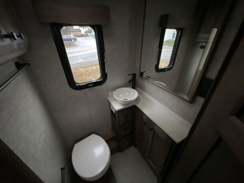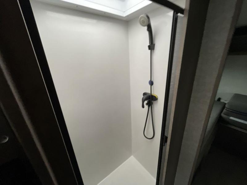 This spacious coach is perfect if you want to bring along any number of people! Twin beds in the rear can be combined to create a comfortable and roomy king bed. If you need even more sleeping space, the jump seats at the center table can convert to a day/child bed. In the kitchen area, you will appreciate the induction cooktop or use the stainless steel convection microwave, and leftovers can go in the 8 cu. ft. refrigerator. This model includes a full bath with a solid surface lavatory top, a vessel bowl porcelain sink, and a one-piece fiberglass shower. Take a seat in the black leather adjustable captain's chairs and enjoy easy access to the controls, including a multi-function touch screen AM/FM stereo with SYNC 3, Bluetooth, Smartphone integration, navigation, and dual USB ports for the ultimate driving experience!