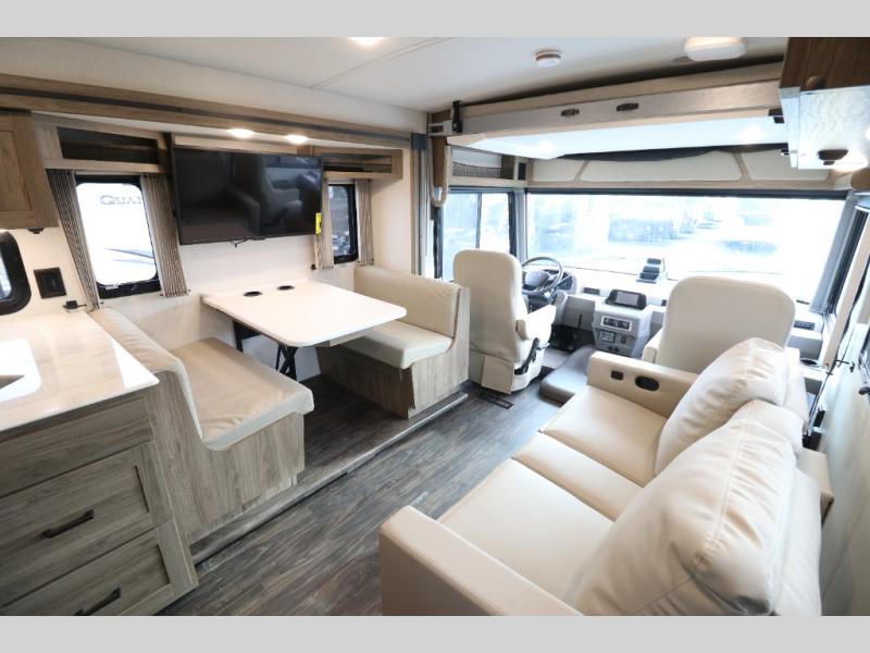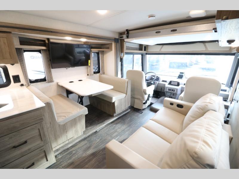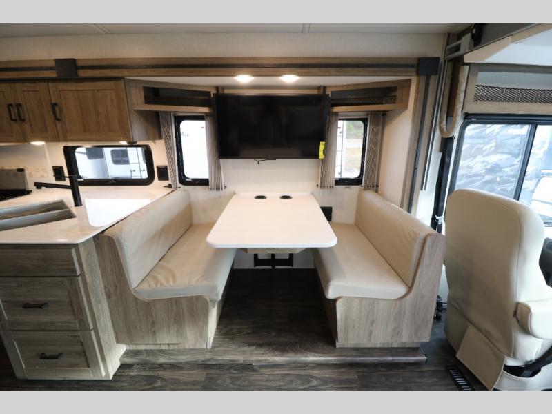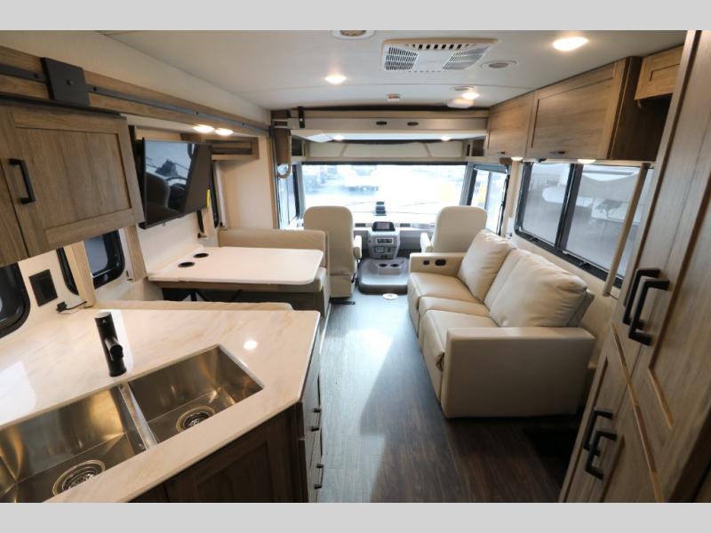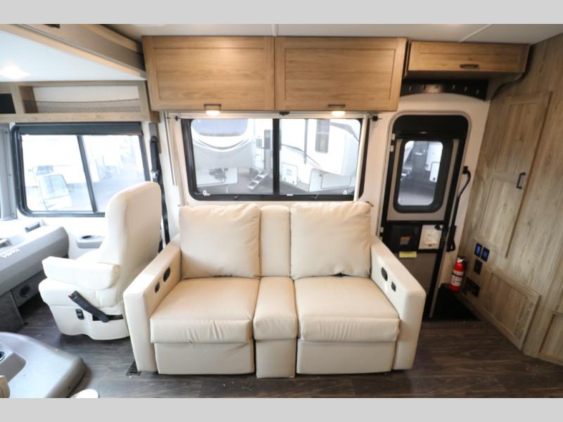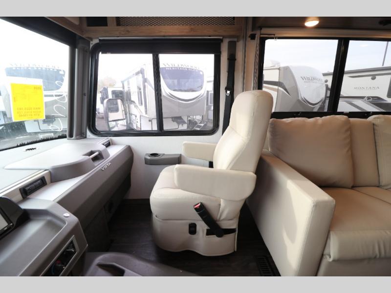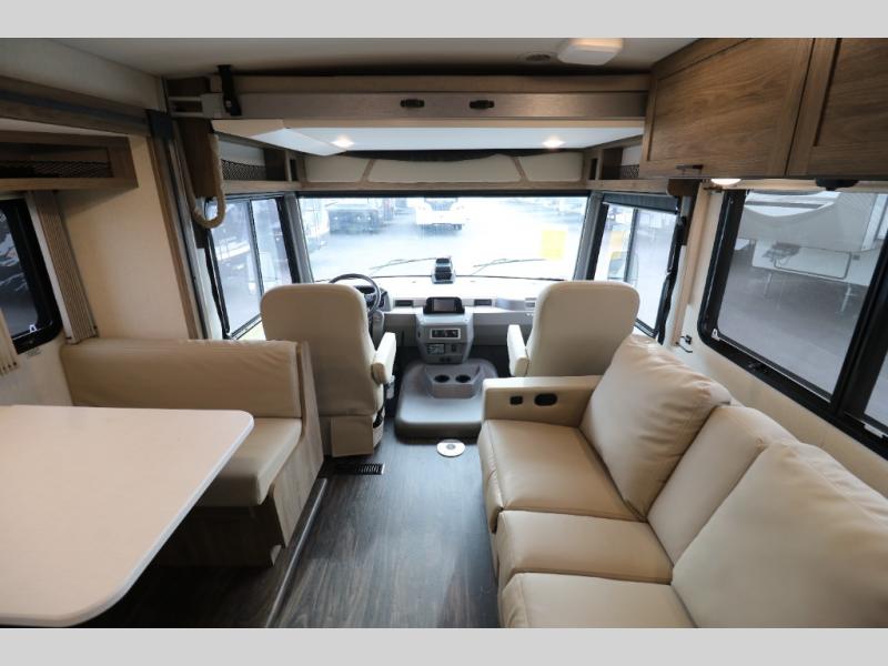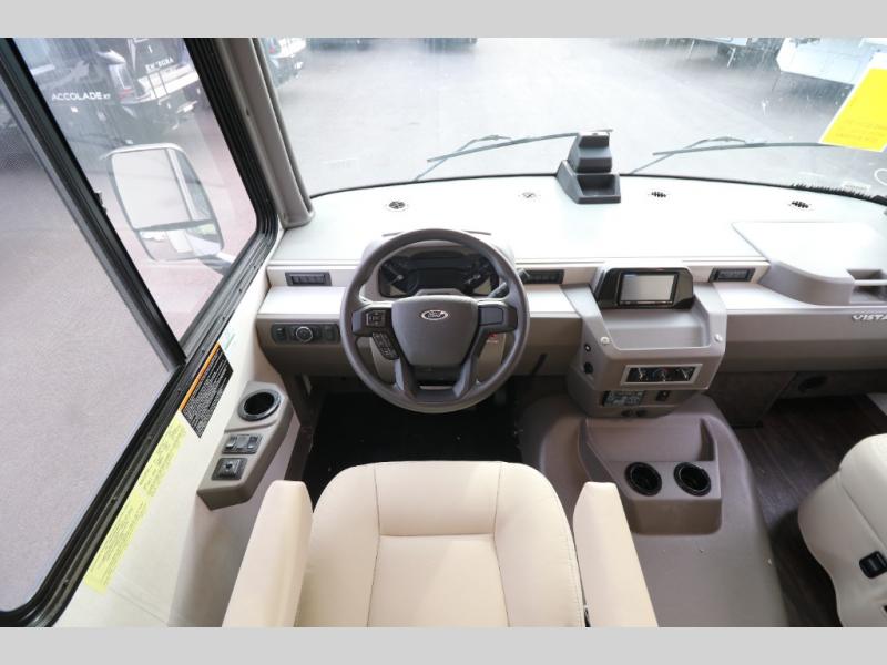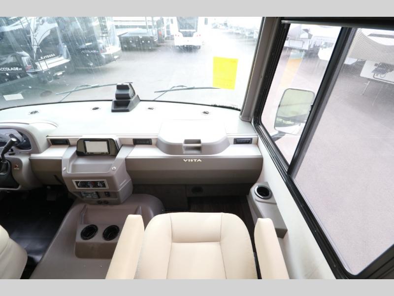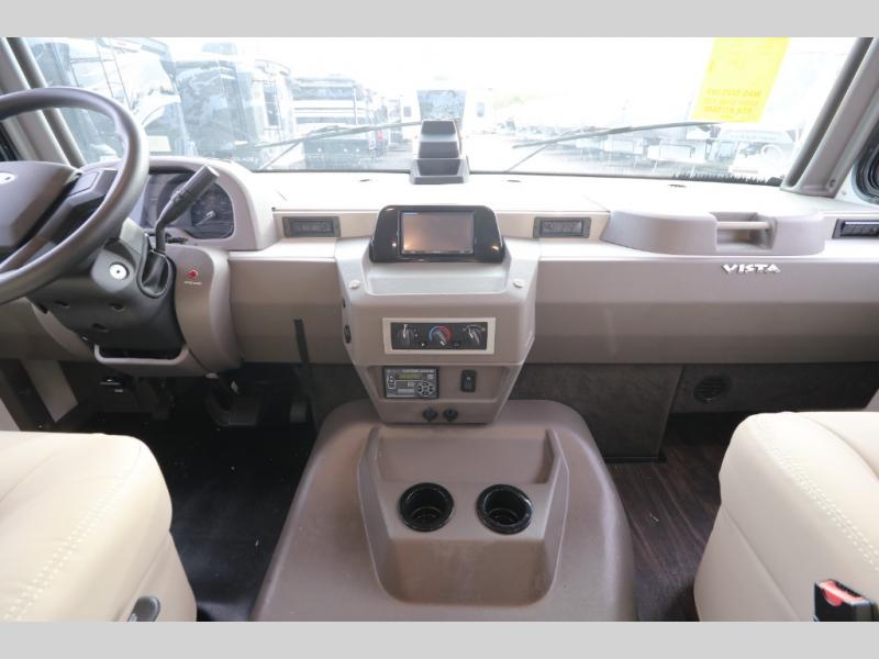 The Winnebago Vista Class A gas motorhome will expand your horizons and provide you a great traveling home on wheels! The Vista is powered by a 7.3L PFI V8 engine on a Ford F53 chassis with 5,000 lbs. of towing capacity which allows you to bring along one of your favorite toys. The adjustable swivel cab seats in front can slide and recline so you can be sure to have the perfect level of comfort in addition to entertainment with the 7" LCD color touch screen that is Sirius XM ready and Bluetooth compatible with Android Auto and Apple CarPlay. The powered blackout roller visor/shade on the front windshield provides extra privacy, and the passenger dash workstation with USB and 12-volt power port lets you get some work done while on the road.