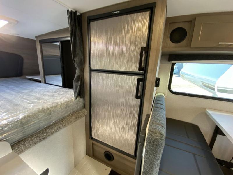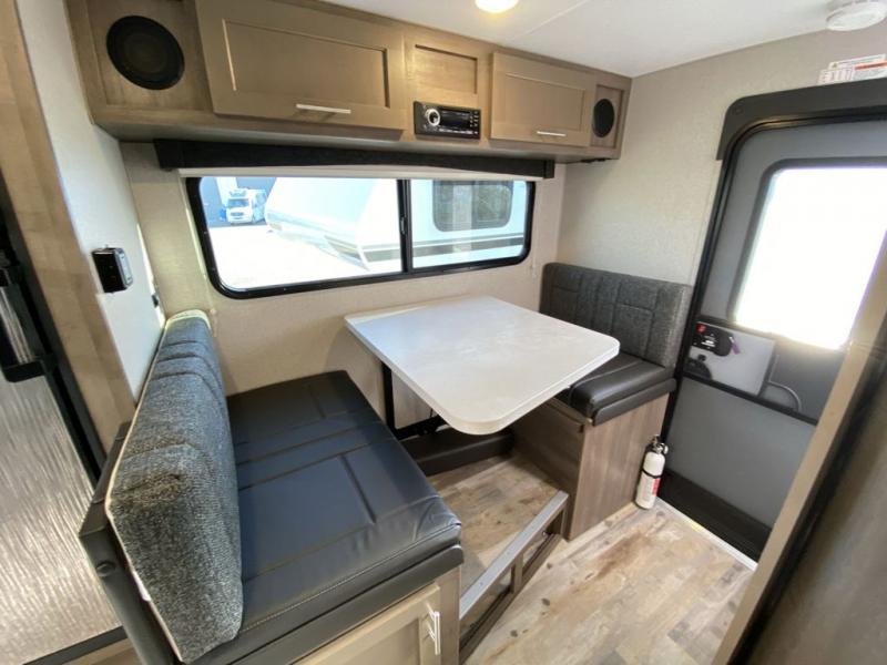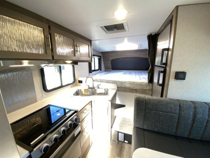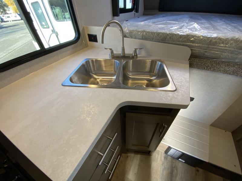 Enjoy each trip in this truck camper that fits 6' and larger short-bed trucks and all long-bed trucks! You can make your meals with the three burner cooktop and large stainless steel oven, store your leftovers in the 7 cu. ft. Dometic 2-door refrigerator/freezer, and clean up with the stainless steel double bowl sink! The Dream Dinette with a bed conversion will allow a guest to sleep over, while you take the front queen bed. There is plenty of storage found throughout, including a wardrobe with a sliding door, additional storage around the bed, and overhead cabinets. This model also includes a seamless one-piece fiberglass wet bath, a medicine cabinet, plus a sliding bathroom door that will save on space. This model also includes the mandatory Elite Option Package that comes with a 26" friction hinge door with a dead bolt and screen, a 4-season insulation package, LED lights both inside and out, plus more!