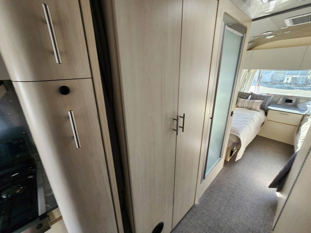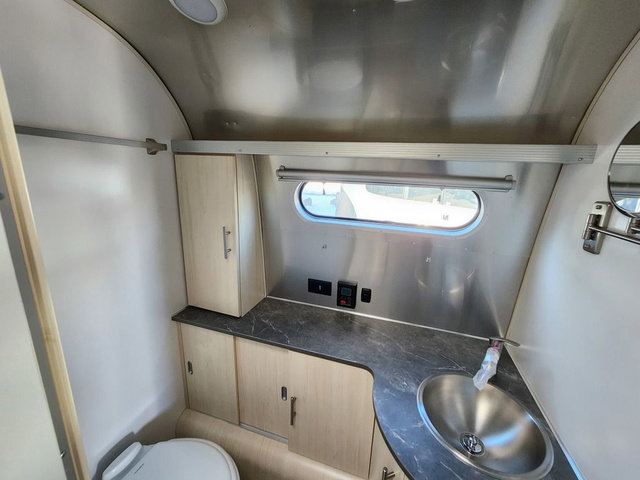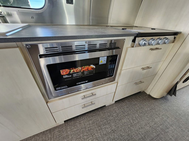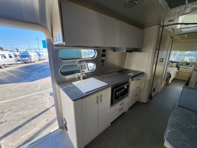 The family-friendly and popular Flying Cloud travel trailers by Airstream are built for ease of towing with a rear-view camera to make reversing and parking easier and stainless steel front stone guards to protect the lower segments from road debris. The iconic Airstream design is created outside and inside by the semi-monocoque aluminum superstructure, the temperature reducing one-piece white aluminum roof, the panoramic front windows, and the stylish aluminum wheels. The interior will have you feeling right at home with handcrafted cabinetry, plenty of storage and counter space, sleek roller blinds and blackout curtains, plus residential style faucets!