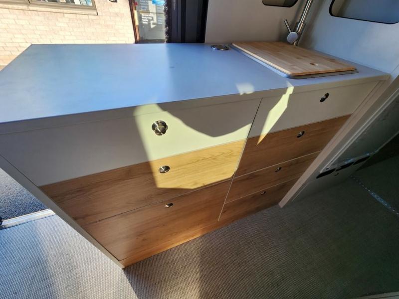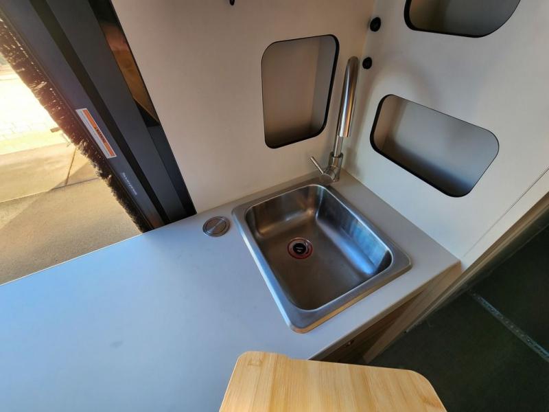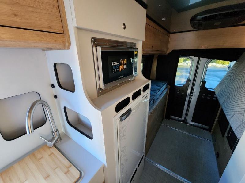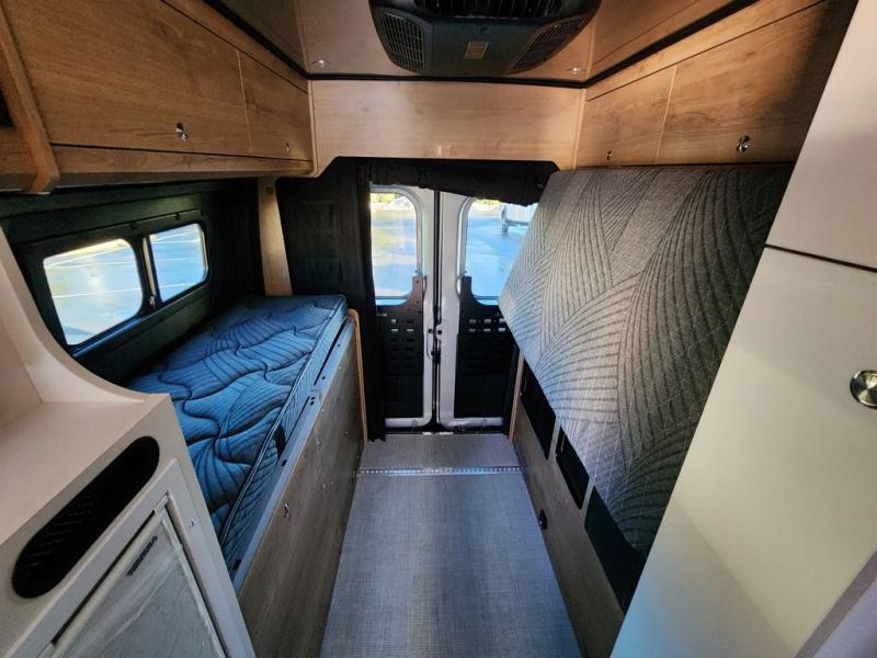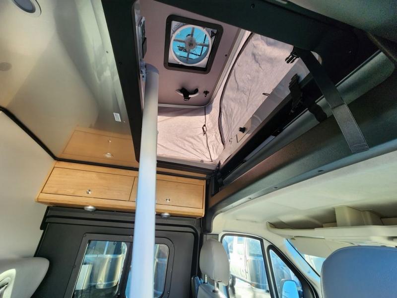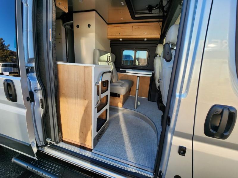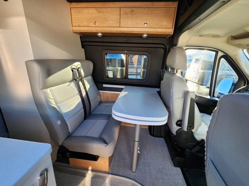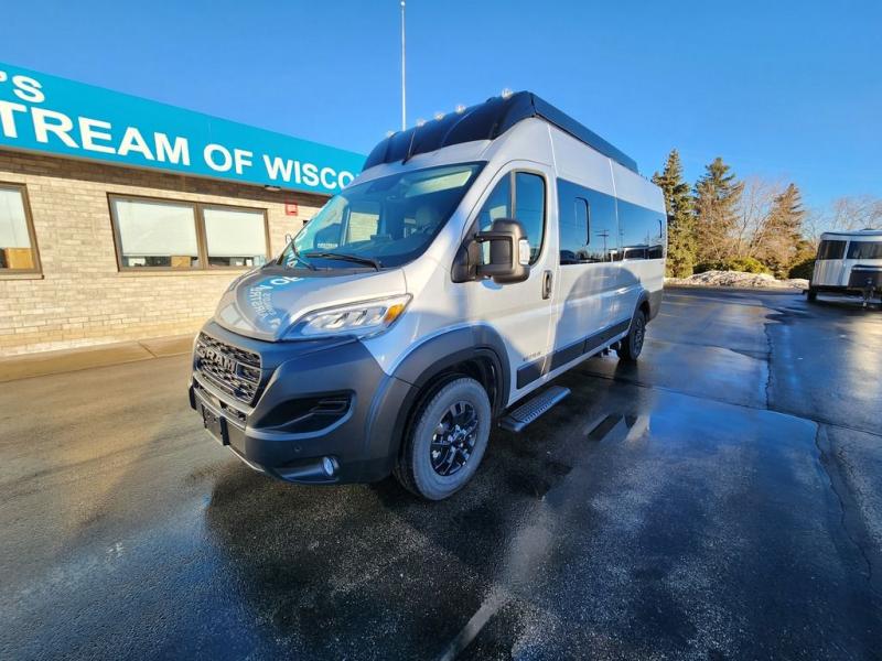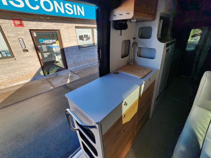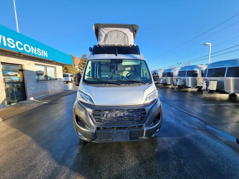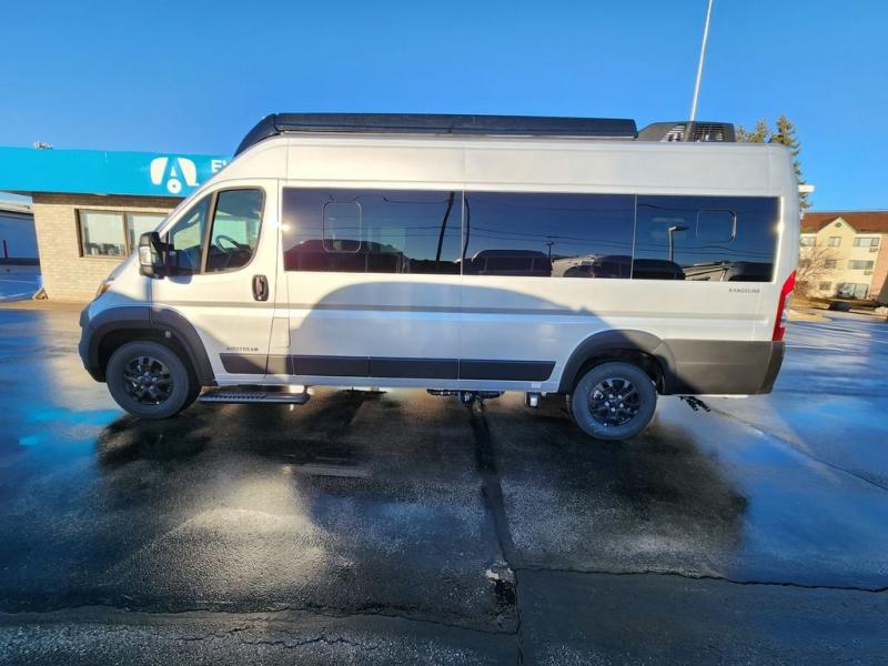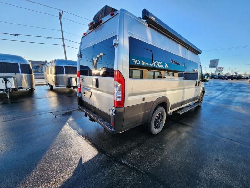The Airstream Rangeline offers complete comfort and flexibility with great living spaces, flexible storage throughout, and all the amenities you need to enjoy travel. Its sleek design with painted grille, two interior color choices with Warm River Oak cabinets and drawers, and gray laminate countertops allows you to travel in style. The Ram ProMaster 3500 chassis offers front-wheel drive and 276 horsepower, with an efficient gas-powered heat and hot water system plus SumoSprings and SuperSprings for an overall better driving experience. Rear storage includes MOLLE panels on the rear doors to hang all your gear, and space under the bed for even more cargo. The optional pop-top roof has three screen windows and another bed, expanding sleeping capacity to four people.