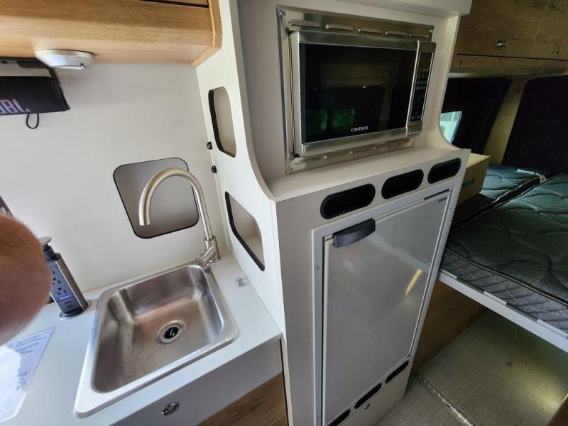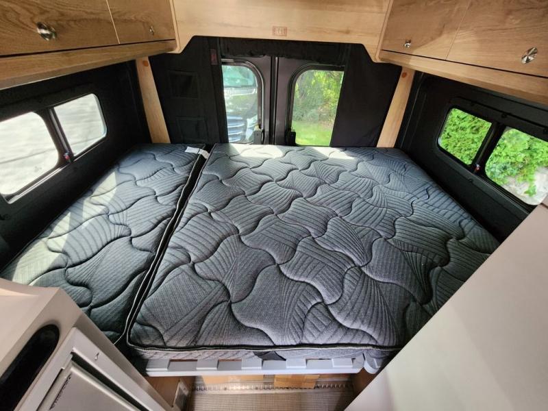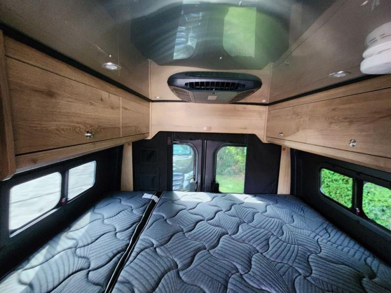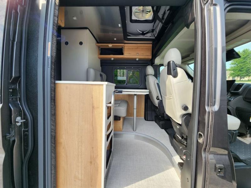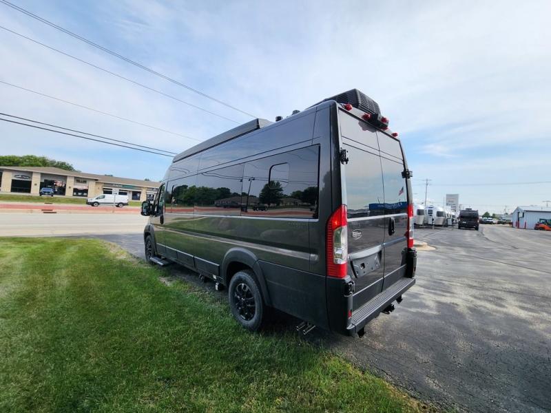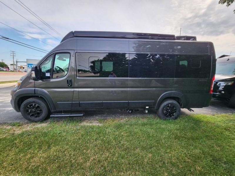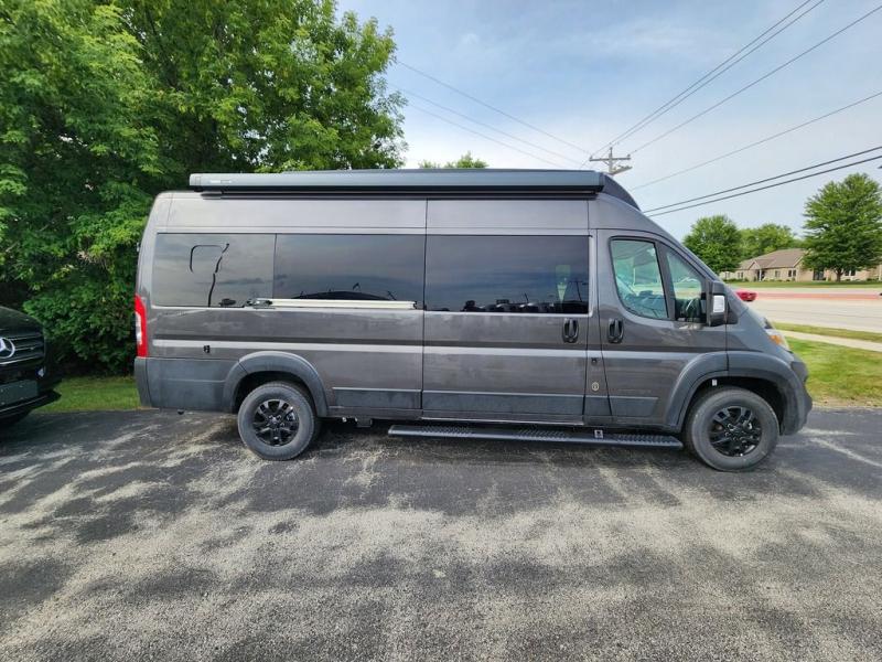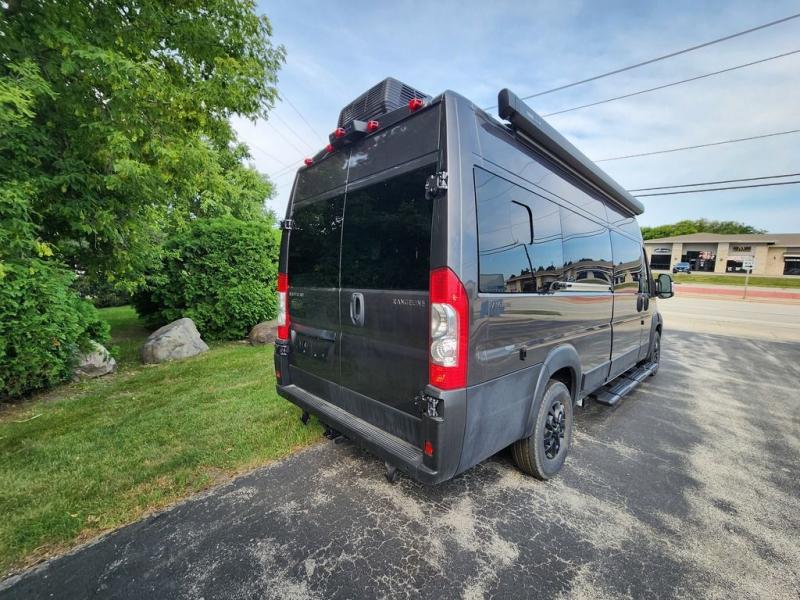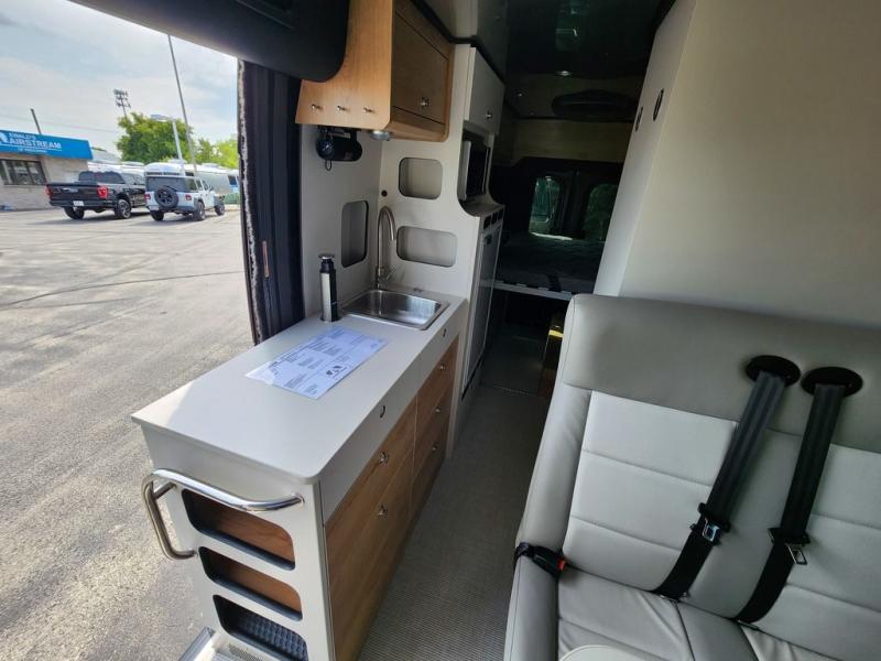 The Airstream Rangeline offers complete comfort and flexibility with great living spaces, flexible storage throughout, and all the amenities you need to enjoy travel. Its sleek design with painted grille, two interior color choices with Warm River Oak cabinets and drawers, and gray laminate countertops allows you to travel in style. The Ram ProMaster 3500 chassis offers front-wheel drive and 276 horsepower, with an efficient gas-powered heat and hot water system plus SumoSprings and SuperSprings for an overall better driving experience. Rear storage includes MOLLE panels on the rear doors to hang all your gear, and space under the bed for even more cargo. The optional pop-top roof has three screen windows and another bed, expanding sleeping capacity to four people.