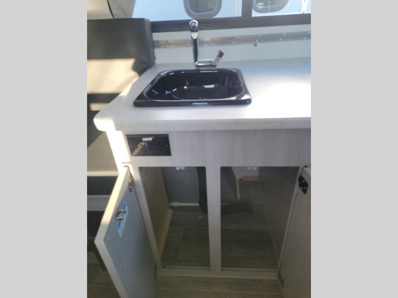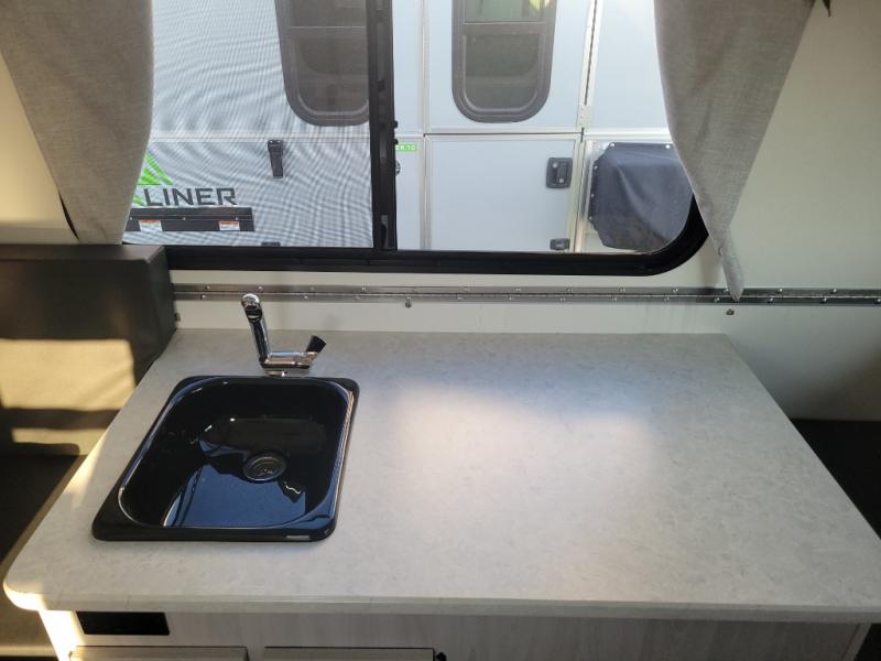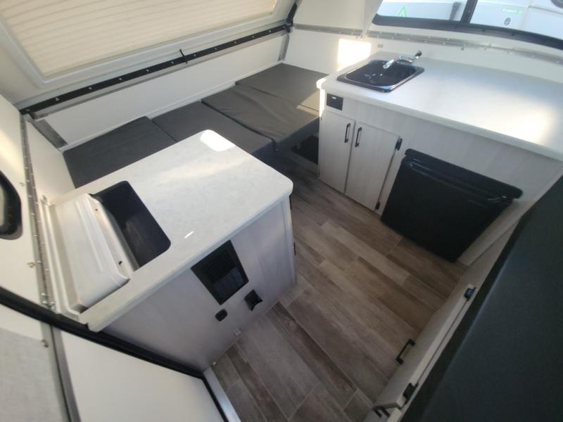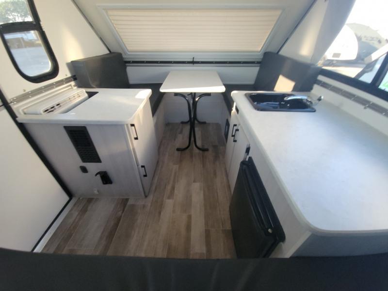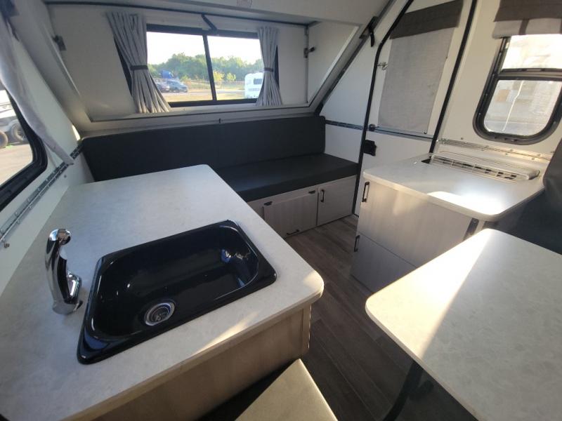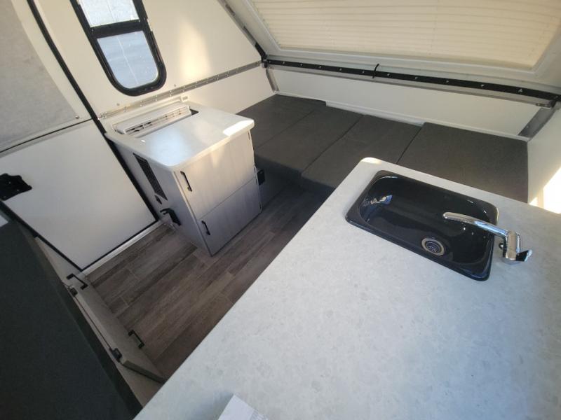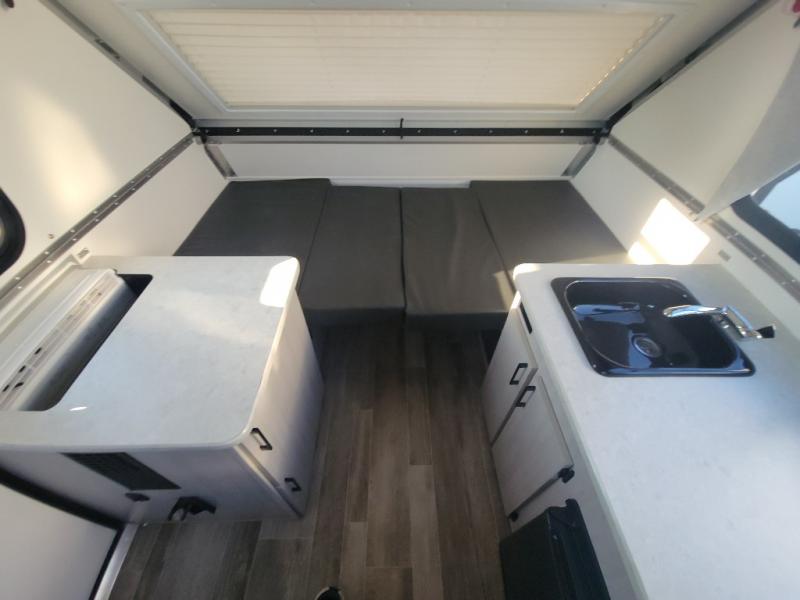 When all you need is the basics to camp because you prefer to be outdoors hiking and exploring, this Scout Lite will be perfect for you! There is sleeping space on either the front 30" x 76" bunk or the rear dinette which converts into a 40" x 76" bed. There is plenty of storage throughout between the storage under the dinette seats, a storage area across from the sink, and storage next to the sink. And you can keep everything charged with the two electrical outlets inside and the one exterior electrical outlet!