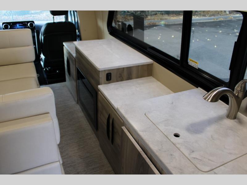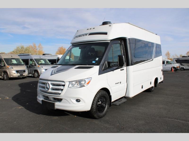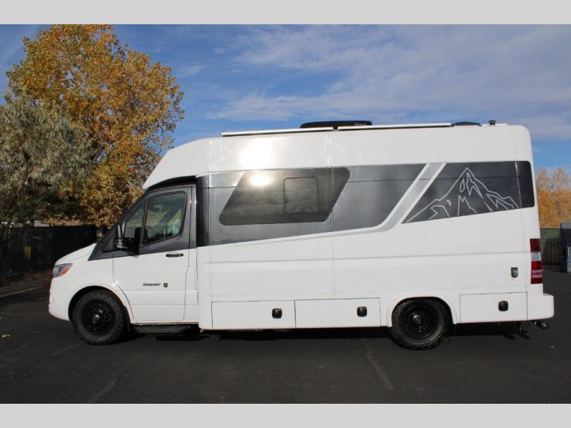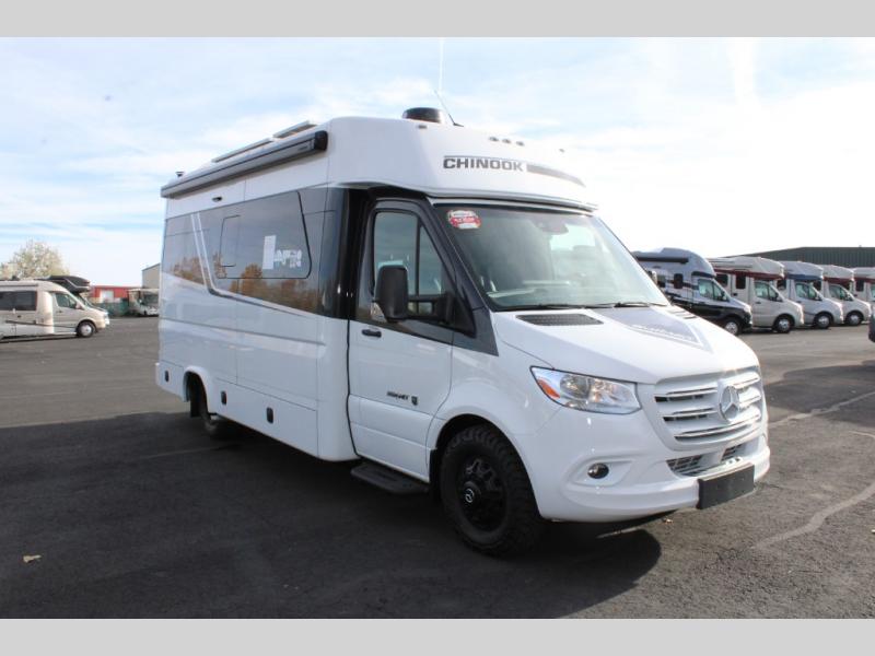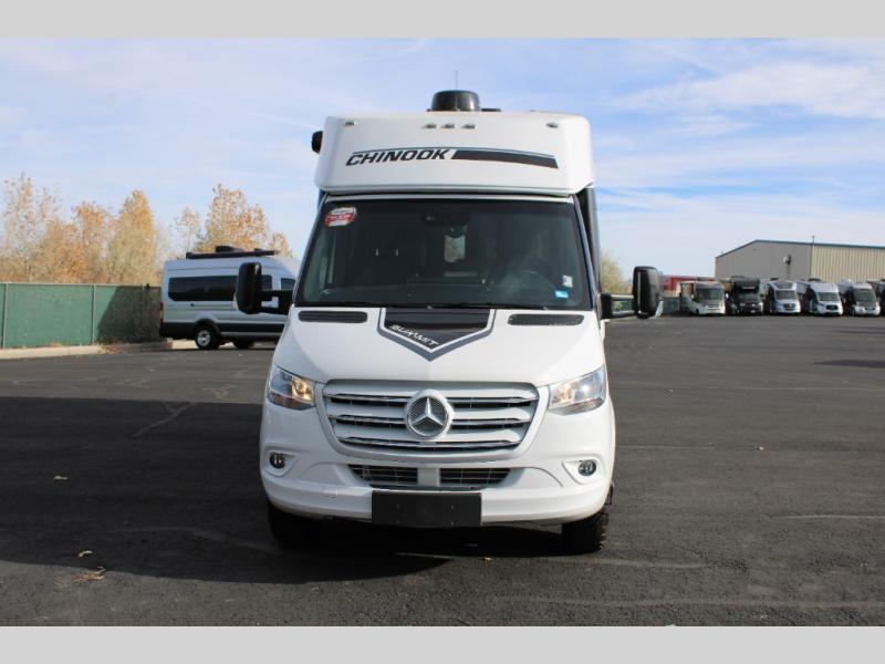 Each one of these Chinook RV Summit Class B+ diesel motorhomes are powered by a Mercedes-Benz Sprinter chassis with a 4 cylinder twin-turbo diesel engine and 9-speed transmission to power your adventures. You'll appreciate the Driver Convenience Package and safety features that include collision warning, a lane keeping system, and side-wind stabilization for a smooth drive. There is also a 4-point leveling system and a Smart Plug with a detachable 30 Amp power cord when you're ready to set up camp. Inside, the stylish interior includes soft touch, padded vinyl finishing, solid surface countertops, shower, and porcelain toilet, plus many more comforts!