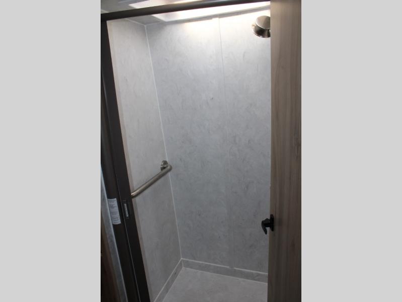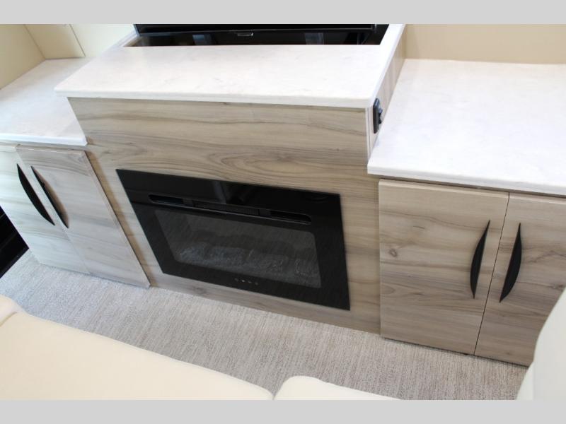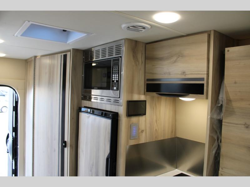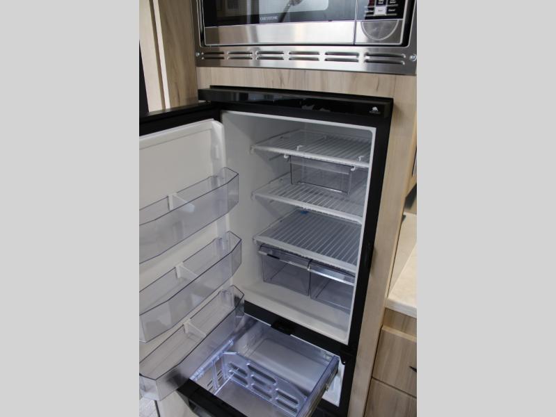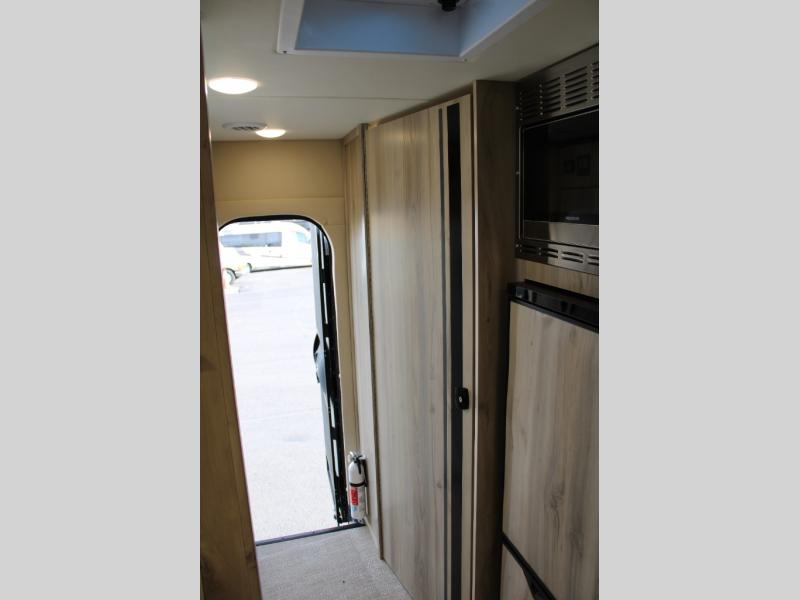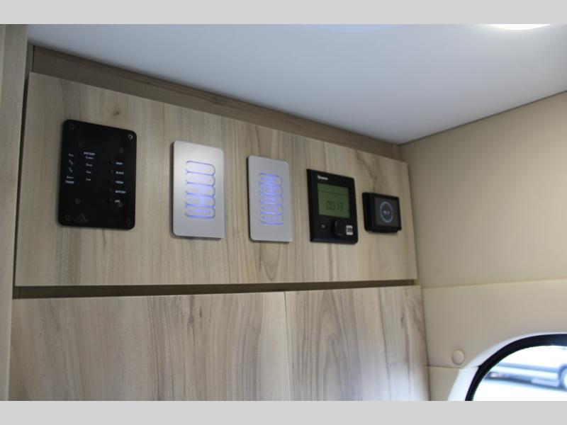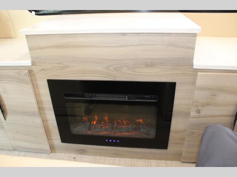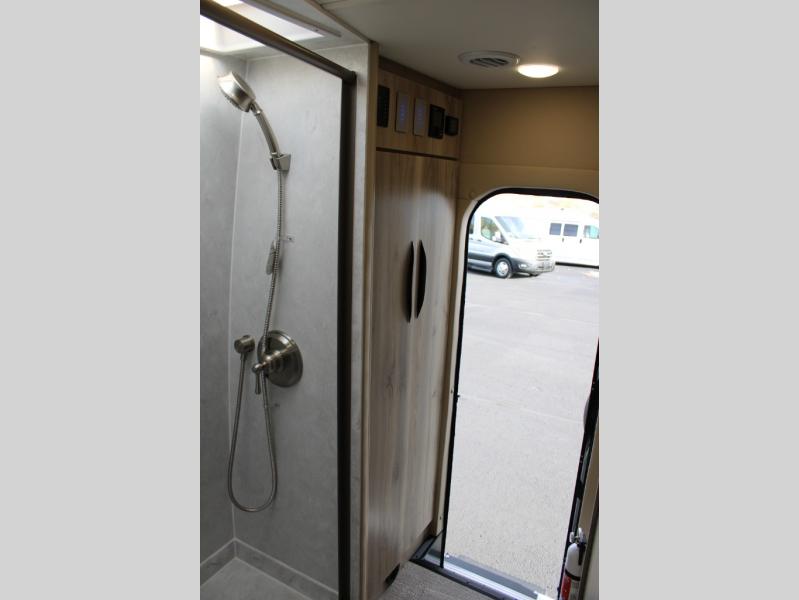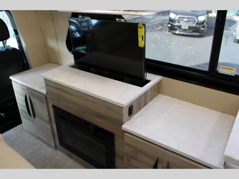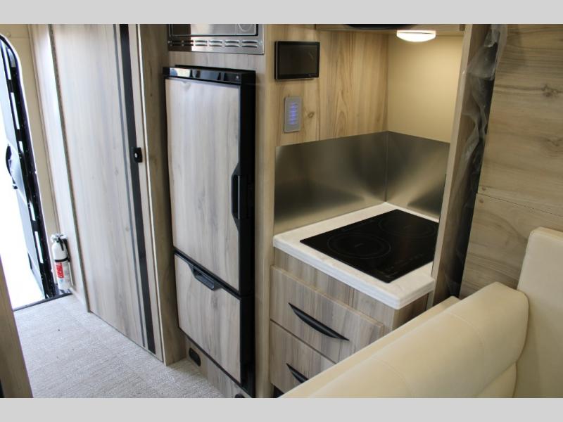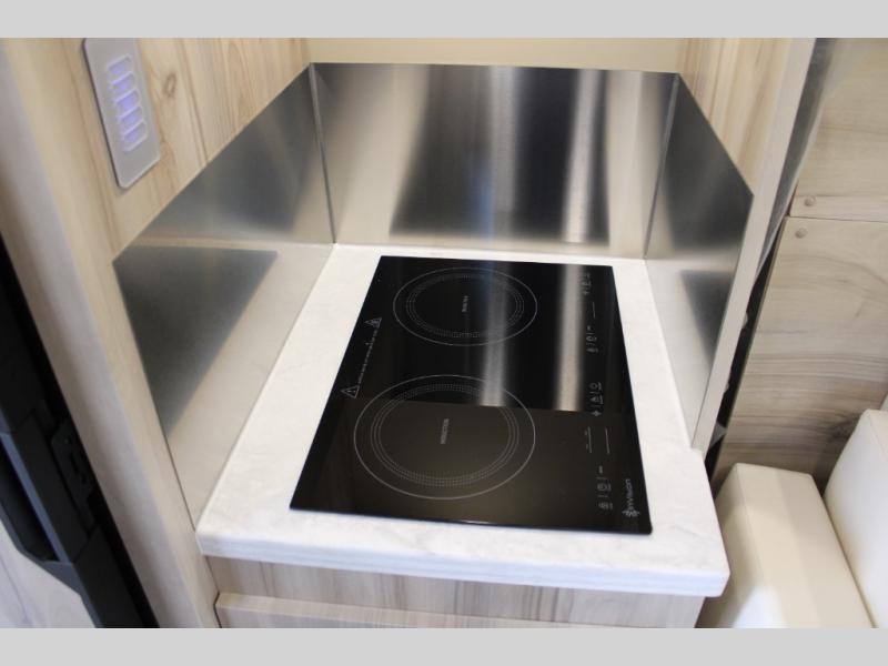 Hit the road in this coach for two! Once you park for the day, you can freshen up with the shower and private toilet and sink right across the hall. There is a wardrobe to change into some comfy clothes before making dinner on the removable single induction cooktop. There is also a Norcold/Thetford 6.2 electric refrigerator to keep your food fresh. When it's time to wind down for the night, you can set up the Murphy bed and watch a movie with the TV, or just enjoy the glow of the fireplace!