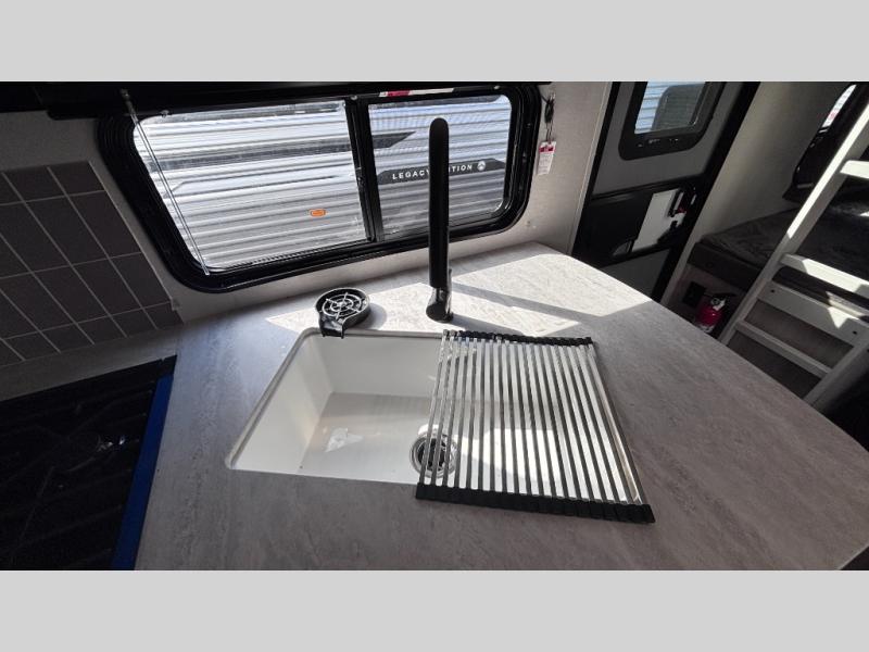 Each Catalina Legacy travel trailer by Coachmen is constructed with a cambered structural steel I-beam frame for added strength and support, plus an enclosed and fully sealed corrugated underbelly to extend your camping season. There is also a seamless Alpha roof membrane, R-7 insulation throughout, full length frame outriggers, plus many more durable construction materials. You will love the 6' 9" interior height, along with Congoleum woodplank linoleum flooring, seamless Thermofoil countertops, and hard valance window treatments. Choose a Catalina Legacy today!