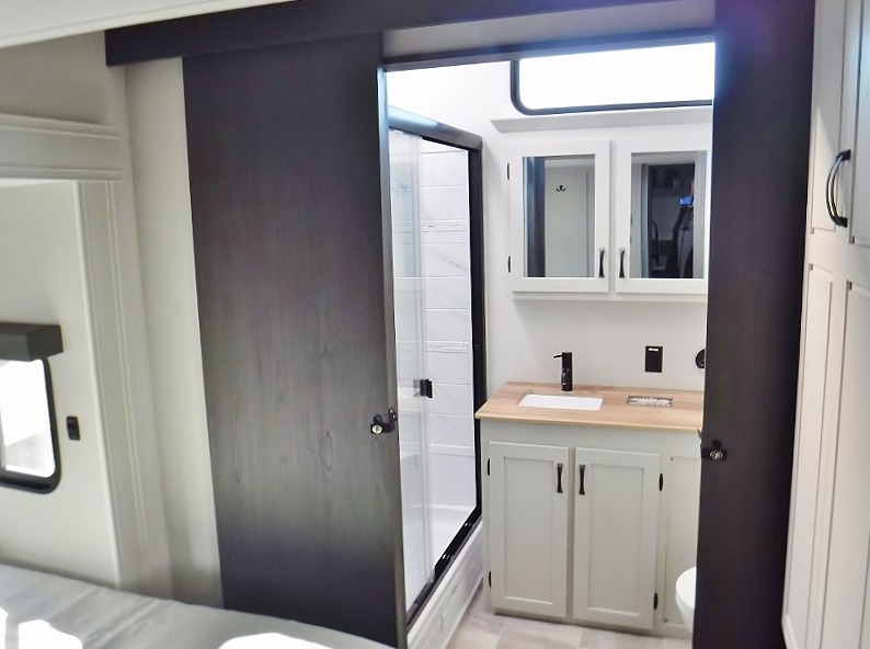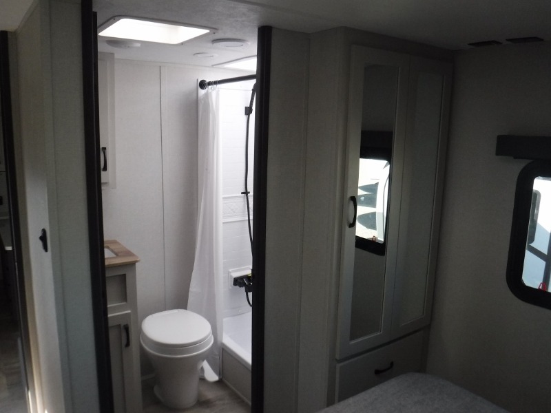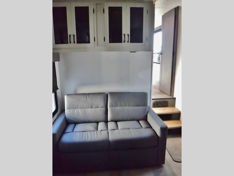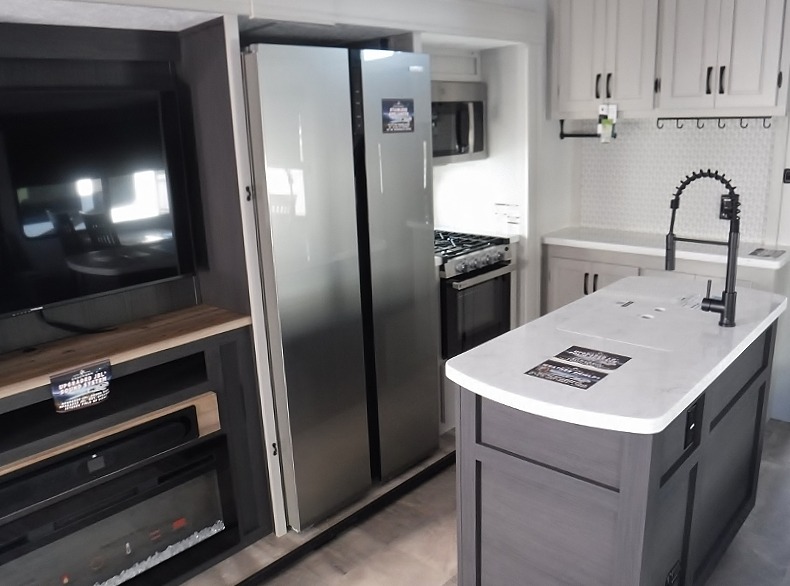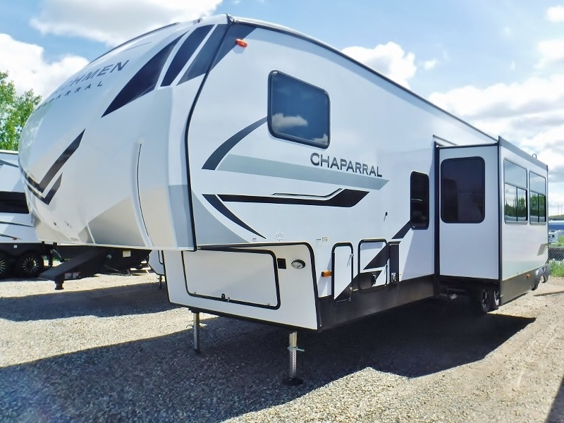 Each Chaparral mid-profile fifth wheel by Coachmen is designed with residential features, loads of storage space, and roomy bedroom suites to make you feel right at home. The durable construction means you can enjoy your RV for years to come. There's 6X double Azdel aluminum cage sidewall system, Weather Shield+ technology, and Tri-Tex powder coated frame technology that will help extend your camping season. Each model includes a Winegard Air 360+ HDTV/radio dome antenna to help keep you connected as you camp, slow rise blackout roller night shades, a new 16 cu. ft. side-by-side stainless glass 12V refrigerator, and a modern electric fireplace to make your space cozy. There is also a large transom window in the kitchen, a modern high-rise faucet, LED motion sensor lights in the bathroom, plus a full-size shower with glass doors and a seat. Now that's what I call luxury! Choose a Chaparral fifth wheel today!