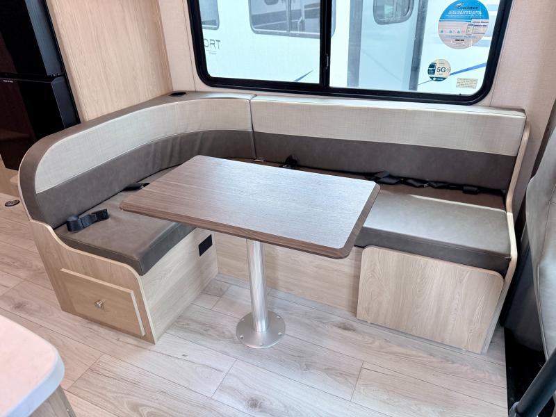With each Leprechaun Class C gas motorhome by Coachmen you will enjoy "better" interior appointments, like the residential-sized beds, on-demand tankless water heater, and 15,000 BTU A/C. A 7" touchscreen dash radio with CarPlay and a backup monitor will let you easily navigate the open road like pro. The Leprechaun is constructed with composite sidewall and cabover floor construction plus a seamless one-piece roof material for a durable motorhome made to last.